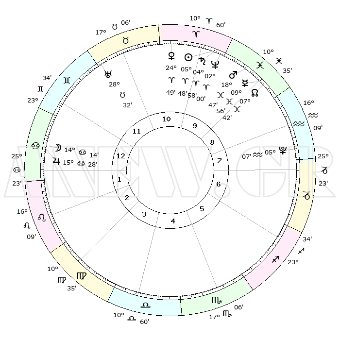 | | ΘΕΣΕΙΣ ΠΛΑΝΗΤΩΝ ΑΣΤΡΟΛΟΓΙΚΟΥ ΧΑΡΤΗ ΤΗΣ ΣΤΙΓΜΗΣ ΑΥΤΗΣ | | | | Πλανήτης | Ζώδιο | Μοίρες | Δεκαήμ. | Σε οίκο | Απόκλιση | | Ακμές των οίκων | | Ηλιος | Κριός | 05°44' | Πρώτο | 10 | 02 N 17 | | 1ος | 04°60' | Καρκίνος | | Σελήνη | Καρκίνος | 13°18' | Δεύτερο | 1 | 27 N 03 | | 2ος | 25°33' | Καρκίνος | | Ερμής | Ιχθείς | 09°54' | Πρώτο | 9 | 08 S 07 | | 3ος | 17°43' | Λέων | | Αφροδίτη | Κριός | 24°44' | Τρίτο | 11 | 08 N 57 | | 4ος | 14°51' | Παρθένος | | Αρης | Ιχθείς | 18°44' | Δεύτερο | 10 | 05 S 26 | | 5ος | 19°31' | Ζυγός | | Δίας | Καρκίνος | 15°28' | Δεύτερο | 1 | 22 N 54 | | 6ος | 29°05' | Σκορπιός | | Κρόνος | Κριός | 04°58' | Πρώτο | 10 | 00 N 01 | | 7ος | 04°60' | Αιγόκερως | | Ουρανός | Ταύρος | 28°32' | Τρίτο | 11 | 19 N 39 | | 8ος | 25°33' | Αιγόκερως | | Ποσειδώνας | Κριός | 01°60' | Πρώτο | 10 | 00 S 24 | | 9ος | 17°43' | Υδροχόος | | Πλούτωνας | Υδροχόος | 05°07' | Πρώτο | 8 | 22 S 48 | | 10ος | 14°51' | Ιχθείς | | Β. Δεσμός | Ιχθείς | 07°42' | Πρώτο | 9 | 08 S 41 | | 11ος | 19°31' | Κριός | | Ωροσκόπος | Καρκίνος | 04°60' | Πρώτο | | | 12ος | 29°05' | Ταύρος | | Μεσουράνημα | Ιχθείς | 14°51' | Δεύτερο | | | |