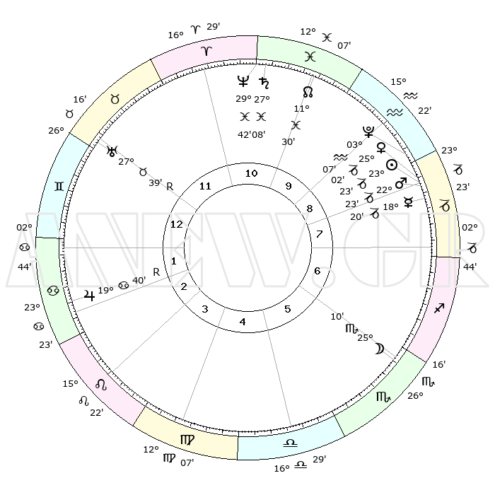 | | ΘΕΣΕΙΣ ΠΛΑΝΗΤΩΝ ΑΣΤΡΟΛΟΓΙΚΟΥ ΧΑΡΤΗ ΤΗΣ ΣΤΙΓΜΗΣ ΑΥΤΗΣ | | | | Πλανήτης | Ζώδιο | Μοίρες | Δεκαήμ. | Σε οίκο | Απόκλιση | | Ακμές των οίκων | | Ηλιος | Αιγόκερως | 23°16' | Τρίτο | 9 | 21 S 26 | | 1ος | 16°32' | Ταύρος | | Σελήνη | Σκορπιός | 23°46' | Τρίτο | 7 | 23 S 28 | | 2ος | 14°23' | Δίδυμοι | | Ερμής | Αιγόκερως | 18°09' | Δεύτερο | 9 | 23 S 53 | | 3ος | 06°31' | Καρκίνος | | Αφροδίτη | Αιγόκερως | 24°53' | Τρίτο | 9 | 22 S 04 | | 4ος | 28°32' | Καρκίνος | | Αρης | Αιγόκερως | 22°18' | Τρίτο | 9 | 22 S 32 | | 5ος | 24°53' | Λέων | | Δίας | Καρκίνος | 19°41'R | Δεύτερο | 3 | 22 N 15 | | 6ος | 00°55' | Ζυγός | | Κρόνος | Ιχθείς | 27°08' | Τρίτο | 11 | 03 S 11 | | 7ος | 16°32' | Σκορπιός | | Ουρανός | Ταύρος | 27°39'R | Τρίτο | 1 | 19 N 27 | | 8ος | 14°23' | Τοξότης | | Ποσειδώνας | Ιχθείς | 29°42' | Τρίτο | 11 | 01 S 20 | | 9ος | 06°31' | Αιγόκερως | | Πλούτωνας | Υδροχόος | 03°07' | Πρώτο | 10 | 23 S 08 | | 10ος | 28°32' | Αιγόκερως | | Β. Δεσμός | Ιχθείς | 11°31' | Δεύτερο | 11 | 07 S 15 | | 11ος | 24°53' | Υδροχόος | | Ωροσκόπος | Ταύρος | 16°32' | Δεύτερο | | | 12ος | 00°55' | Κριός | | Μεσουράνημα | Αιγόκερως | 28°32' | Τρίτο | | | |