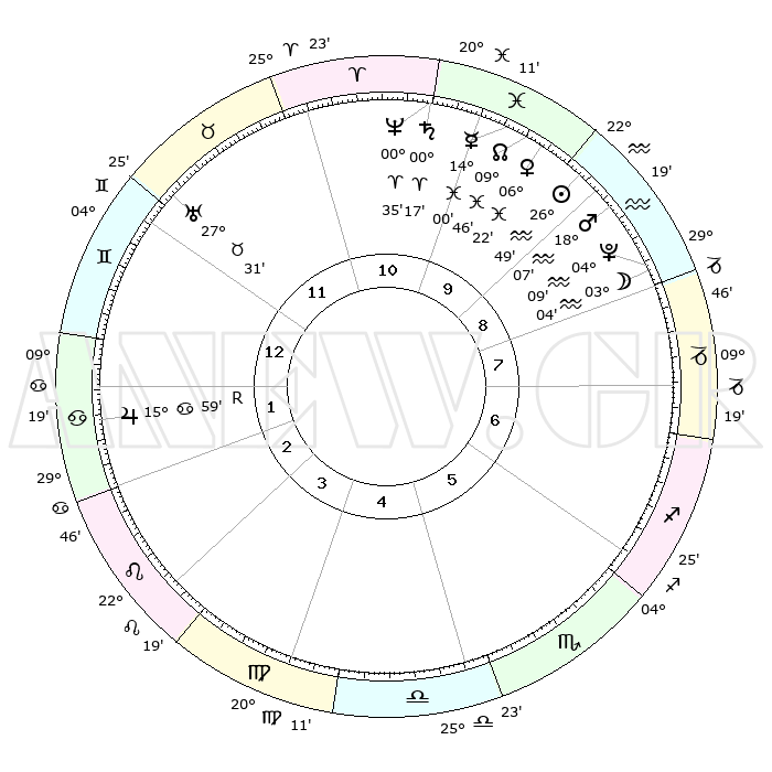 | | ΘΕΣΕΙΣ ΠΛΑΝΗΤΩΝ ΑΣΤΡΟΛΟΓΙΚΟΥ ΧΑΡΤΗ ΤΗΣ ΣΤΙΓΜΗΣ ΑΥΤΗΣ | | | | Πλανήτης | Ζώδιο | Μοίρες | Δεκαήμ. | Σε οίκο | Απόκλιση | | Ακμές των οίκων | | Ηλιος | Υδροχόος | 26°45' | Τρίτο | 10 | 12 S 36 | | 1ος | 14°20' | Δίδυμοι | | Σελήνη | Υδροχόος | 02°08' | Πρώτο | 9 | 22 S 46 | | 2ος | 06°41' | Καρκίνος | | Ερμής | Ιχθείς | 13°54' | Δεύτερο | 10 | 06 S 12 | | 3ος | 27°55' | Καρκίνος | | Αφροδίτη | Ιχθείς | 06°16' | Πρώτο | 10 | 10 S 34 | | 4ος | 22°02' | Λέων | | Αρης | Υδροχόος | 18°04' | Δεύτερο | 9 | 16 S 26 | | 5ος | 23°08' | Παρθένος | | Δίας | Καρκίνος | 15°60'R | Δεύτερο | 2 | 22 N 48 | | 6ος | 03°13' | Σκορπιός | | Κρόνος | Κριός | 00°16' | Πρώτο | 11 | 01 S 52 | | 7ος | 14°20' | Τοξότης | | Ουρανός | Ταύρος | 27°31' | Τρίτο | 12 | 19 N 25 | | 8ος | 06°41' | Αιγόκερως | | Ποσειδώνας | Κριός | 00°35' | Πρώτο | 11 | 00 S 58 | | 9ος | 27°55' | Αιγόκερως | | Πλούτωνας | Υδροχόος | 04°09' | Πρώτο | 9 | 22 S 56 | | 10ος | 22°02' | Υδροχόος | | Β. Δεσμός | Ιχθείς | 09°46' | Πρώτο | 10 | 07 S 54 | | 11ος | 23°08' | Ιχθείς | | Ωροσκόπος | Δίδυμοι | 14°20' | Δεύτερο | | | 12ος | 03°13' | Ταύρος | | Μεσουράνημα | Υδροχόος | 22°02' | Τρίτο | | | |
