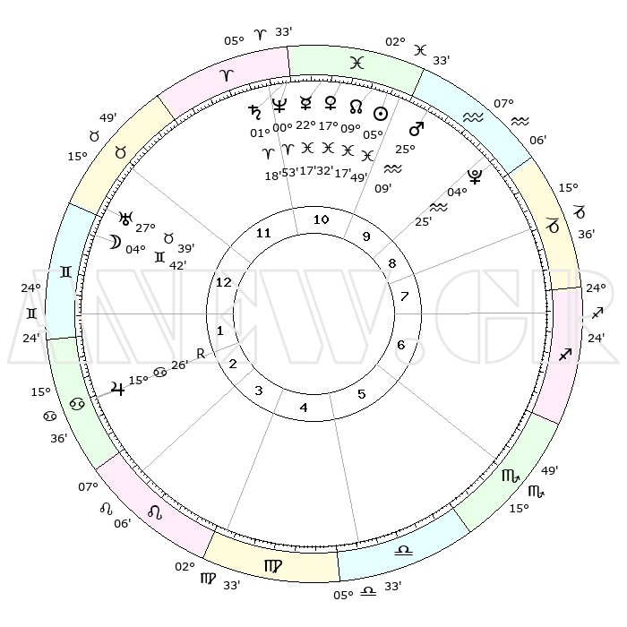 | | ΘΕΣΕΙΣ ΠΛΑΝΗΤΩΝ ΑΣΤΡΟΛΟΓΙΚΟΥ ΧΑΡΤΗ ΤΗΣ ΣΤΙΓΜΗΣ ΑΥΤΗΣ | | | | Πλανήτης | Ζώδιο | Μοίρες | Δεκαήμ. | Σε οίκο | Απόκλιση | | Ακμές των οίκων | | Ηλιος | Ιχθείς | 05°46' | Πρώτο | 10 | 09 S 24 | | 1ος | 02°41' | Δίδυμοι | | Σελήνη | Δίδυμοι | 03°53' | Πρώτο | 1 | 26 N 05 | | 2ος | 26°58' | Δίδυμοι | | Ερμής | Ιχθείς | 22°16' | Τρίτο | 11 | 00 S 54 | | 3ος | 18°18' | Καρκίνος | | Αφροδίτη | Ιχθείς | 17°27' | Δεύτερο | 11 | 06 S 16 | | 4ος | 11°16' | Λέων | | Αρης | Υδροχόος | 25°07' | Τρίτο | 10 | 14 S 11 | | 5ος | 10°12' | Παρθένος | | Δίας | Καρκίνος | 15°26'R | Δεύτερο | 2 | 22 N 53 | | 6ος | 19°03' | Ζυγός | | Κρόνος | Κριός | 01°18' | Πρώτο | 11 | 01 S 27 | | 7ος | 02°41' | Τοξότης | | Ουρανός | Ταύρος | 27°38' | Τρίτο | 12 | 19 N 27 | | 8ος | 26°58' | Τοξότης | | Ποσειδώνας | Κριός | 00°53' | Πρώτο | 11 | 00 S 51 | | 9ος | 18°18' | Αιγόκερως | | Πλούτωνας | Υδροχόος | 04°25' | Πρώτο | 9 | 22 S 54 | | 10ος | 11°16' | Υδροχόος | | Β. Δεσμός | Ιχθείς | 09°17' | Πρώτο | 10 | 08 S 05 | | 11ος | 10°12' | Ιχθείς | | Ωροσκόπος | Δίδυμοι | 02°41' | Πρώτο | | | 12ος | 19°03' | Κριός | | Μεσουράνημα | Υδροχόος | 11°16' | Δεύτερο | | | |