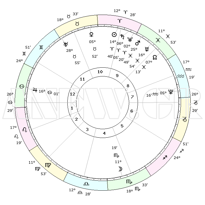 | | ΘΕΣΕΙΣ ΠΛΑΝΗΤΩΝ ΑΣΤΡΟΛΟΓΙΚΟΥ ΧΑΡΤΗ ΤΗΣ ΣΤΙΓΜΗΣ ΑΥΤΗΣ | | | | Πλανήτης | Ζώδιο | Μοίρες | Δεκαήμ. | Σε οίκο | Απόκλιση | | Ακμές των οίκων | | Ηλιος | Κριός | 14°36' | Δεύτερο | 10 | 05 N 45 | | 1ος | 06°38' | Καρκίνος | | Σελήνη | Σκορπιός | 10°31' | Δεύτερο | 5 | 19 S 18 | | 2ος | 27°08' | Καρκίνος | | Ερμής | Ιχθείς | 16°50' | Δεύτερο | 9 | 06 S 50 | | 3ος | 19°27' | Λέων | | Αφροδίτη | Ταύρος | 05°47' | Πρώτο | 11 | 13 N 10 | | 4ος | 16°51' | Παρθένος | | Αρης | Ιχθείς | 25°45' | Τρίτο | 10 | 02 S 38 | | 5ος | 21°44' | Ζυγός | | Δίας | Καρκίνος | 16°01' | Δεύτερο | 1 | 22 N 51 | | 6ος | 01°06' | Τοξότης | | Κρόνος | Κριός | 06°05' | Πρώτο | 10 | 00 N 27 | | 7ος | 06°38' | Αιγόκερως | | Ουρανός | Ταύρος | 28°55' | Τρίτο | 11 | 19 N 45 | | 8ος | 27°08' | Αιγόκερως | | Ποσειδώνας | Κριός | 02°20' | Πρώτο | 10 | 00 S 16 | | 9ος | 19°27' | Υδροχόος | | Πλούτωνας | Υδροχόος | 05°16' | Πρώτο | 8 | 22 S 47 | | 10ος | 16°51' | Ιχθείς | | Β. Δεσμός | Ιχθείς | 07°14' | Πρώτο | 9 | 08 S 51 | | 11ος | 21°44' | Κριός | | Ωροσκόπος | Καρκίνος | 06°38' | Πρώτο | | | 12ος | 01°06' | Δίδυμοι | | Μεσουράνημα | Ιχθείς | 16°51' | Δεύτερο | | | |