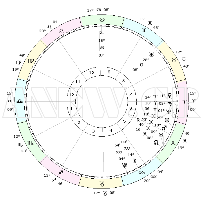 | | ΘΕΣΕΙΣ ΠΛΑΝΗΤΩΝ ΑΣΤΡΟΛΟΓΙΚΟΥ ΧΑΡΤΗ ΤΗΣ ΣΤΙΓΜΗΣ ΑΥΤΗΣ | | | | Πλανήτης | Ζώδιο | Μοίρες | Δεκαήμ. | Σε οίκο | Απόκλιση | | Ακμές των οίκων | | Ηλιος | Ιχθείς | 25°07' | Τρίτο | 6 | 01 S 57 | | 1ος | 27°33' | Παρθένος | | Σελήνη | Υδροχόος | 13°23' | Δεύτερο | 5 | 18 S 59 | | 2ος | 23°58' | Ζυγός | | Ερμής | Ιχθείς | 09°51'R | Πρώτο | 6 | 05 S 47 | | 3ος | 24°18' | Σκορπιός | | Αφροδίτη | Κριός | 11°30' | Δεύτερο | 7 | 03 N 36 | | 4ος | 27°15' | Τοξότης | | Αρης | Ιχθείς | 10°20' | Δεύτερο | 6 | 08 S 42 | | 5ος | 00°16' | Υδροχόος | | Δίας | Καρκίνος | 15°07' | Δεύτερο | 10 | 22 N 56 | | 6ος | 00°48' | Ιχθείς | | Κρόνος | Κριός | 03°38' | Πρώτο | 7 | 00 S 30 | | 7ος | 27°33' | Ιχθείς | | Ουρανός | Ταύρος | 28°08' | Τρίτο | 9 | 19 N 34 | | 8ος | 23°58' | Κριός | | Ποσειδώνας | Κριός | 01°36' | Πρώτο | 7 | 00 S 34 | | 9ος | 24°18' | Ταύρος | | Πλούτωνας | Υδροχόος | 04°54' | Πρώτο | 5 | 22 S 49 | | 10ος | 27°15' | Δίδυμοι | | Β. Δεσμός | Ιχθείς | 08°16' | Πρώτο | 6 | 08 S 28 | | 11ος | 00°16' | Λέων | | Ωροσκόπος | Παρθένος | 27°33' | Τρίτο | | | 12ος | 00°48' | Παρθένος | | Μεσουράνημα | Δίδυμοι | 27°15' | Τρίτο | | | |
