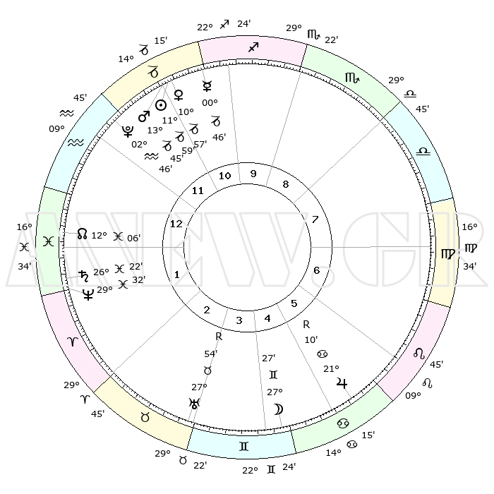 | | ΘΕΣΕΙΣ ΠΛΑΝΗΤΩΝ ΑΣΤΡΟΛΟΓΙΚΟΥ ΧΑΡΤΗ ΤΗΣ ΣΤΙΓΜΗΣ ΑΥΤΗΣ | | | | Πλανήτης | Ζώδιο | Μοίρες | Δεκαήμ. | Σε οίκο | Απόκλιση | | Ακμές των οίκων | | Ηλιος | Αιγόκερως | 11°54' | Δεύτερο | 12 | 22 S 54 | | 1ος | 07°05' | Υδροχόος | | Σελήνη | Δίδυμοι | 26°19' | Τρίτο | 5 | 28 N 16 | | 2ος | 22°10' | Ιχθείς | | Ερμής | Αιγόκερως | 00°39' | Πρώτο | 11 | 24 S 09 | | 3ος | 29°24' | Κριός | | Αφροδίτη | Αιγόκερως | 10°51' | Δεύτερο | 12 | 23 S 32 | | 4ος | 26°42' | Ταύρος | | Αρης | Αιγόκερως | 13°42' | Δεύτερο | 12 | 23 S 37 | | 5ος | 19°01' | Δίδυμοι | | Δίας | Καρκίνος | 21°11'R | Τρίτο | 6 | 22 N 00 | | 6ος | 10°45' | Καρκίνος | | Κρόνος | Ιχθείς | 26°22' | Τρίτο | 2 | 03 S 31 | | 7ος | 07°05' | Λέων | | Ουρανός | Ταύρος | 27°55'R | Τρίτο | 4 | 19 N 30 | | 8ος | 22°10' | Παρθένος | | Ποσειδώνας | Ιχθείς | 29°31' | Τρίτο | 2 | 01 S 25 | | 9ος | 29°24' | Ζυγός | | Πλούτωνας | Υδροχόος | 02°46' | Πρώτο | 12 | 23 S 13 | | 10ος | 26°42' | Σκορπιός | | Β. Δεσμός | Ιχθείς | 12°06' | Δεύτερο | 1 | 07 S 01 | | 11ος | 19°01' | Τοξότης | | Ωροσκόπος | Υδροχόος | 07°05' | Πρώτο | | | 12ος | 10°45' | Αιγόκερως | | Μεσουράνημα | Σκορπιός | 26°42' | Τρίτο | | | |