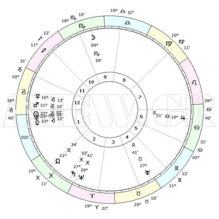 | | ΘΕΣΕΙΣ ΠΛΑΝΗΤΩΝ ΑΣΤΡΟΛΟΓΙΚΟΥ ΧΑΡΤΗ ΤΗΣ ΣΤΙΓΜΗΣ ΑΥΤΗΣ | | | | Πλανήτης | Ζώδιο | Μοίρες | Δεκαήμ. | Σε οίκο | Απόκλιση | | Ακμές των οίκων | | Ηλιος | Αιγόκερως | 21°58' | Τρίτο | 1 | 21 S 39 | | 1ος | 29°13' | Τοξότης | | Σελήνη | Σκορπιός | 08°36' | Πρώτο | 10 | 18 S 29 | | 2ος | 06°11' | Υδροχόος | | Ερμής | Αιγόκερως | 16°06' | Δεύτερο | 1 | 24 S 03 | | 3ος | 16°07' | Ιχθείς | | Αφροδίτη | Αιγόκερως | 23°17' | Τρίτο | 1 | 22 S 18 | | 4ος | 20°11' | Κριός | | Αρης | Αιγόκερως | 21°18' | Τρίτο | 1 | 22 S 41 | | 5ος | 16°37' | Ταύρος | | Δίας | Καρκίνος | 19°51'R | Δεύτερο | 7 | 22 N 14 | | 6ος | 08°29' | Δίδυμοι | | Κρόνος | Ιχθείς | 27°02' | Τρίτο | 3 | 03 S 13 | | 7ος | 29°13' | Δίδυμοι | | Ουρανός | Ταύρος | 27°41'R | Τρίτο | 5 | 19 N 27 | | 8ος | 06°11' | Λέων | | Ποσειδώνας | Ιχθείς | 29°41' | Τρίτο | 3 | 01 S 21 | | 9ος | 16°07' | Παρθένος | | Πλούτωνας | Υδροχόος | 03°04' | Πρώτο | 1 | 23 S 09 | | 10ος | 20°11' | Ζυγός | | Β. Δεσμός | Ιχθείς | 11°35' | Δεύτερο | 2 | 07 S 13 | | 11ος | 16°37' | Σκορπιός | | Ωροσκόπος | Τοξότης | 29°13' | Τρίτο | | | 12ος | 08°29' | Τοξότης | | Μεσουράνημα | Ζυγός | 20°11' | Τρίτο | | | |