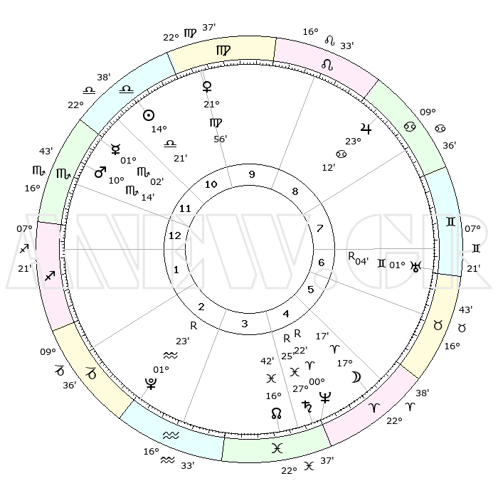 | ΘΕΣΕΙΣ ΠΛΑΝΗΤΩΝ ΑΣΤΡΟΛΟΓΙΚΟΥ ΧΑΡΤΗ ΤΗΣ ΣΤΙΓΜΗΣ ΑΥΤΗΣ | | Πλανήτης | Ζώδιο | Μοίρες | Δεκαήμ. | Σε οίκο | Απόκλιση | | Ακμές των οίκων | Ηλιος | Ζυγός | 14°16' | Δεύτερο | 11 | 05 S 37 | | 1ος | 12°03' | Σκορπιός | Σελήνη | Κριός | 15°59' | Δεύτερο | 5 | 08 N 32 | | 2ος | 11°17' | Τοξότης | Ερμής | Σκορπιός | 00°54' | Πρώτο | 12 | 12 S 35 | | 3ος | 14°24' | Αιγόκερως | Αφροδίτη | Παρθένος | 21°50' | Τρίτο | 10 | 04 N 32 | | 4ος | 19°28' | Υδροχόος | Αρης | Σκορπιός | 10°10' | Δεύτερο | 12 | 15 S 00 | | 5ος | 22°03' | Ιχθείς | Δίας | Καρκίνος | 23°11' | Τρίτο | 9 | 21 N 28 | | 6ος | 19°27' | Κριός | Κρόνος | Ιχθείς | 27°25'R | Τρίτο | 5 | 03 S 20 | | 7ος | 12°03' | Ταύρος | Ουρανός | Δίδυμοι | 01°04'R | Πρώτο | 7 | 20 N 10 | | 8ος | 11°17' | Δίδυμοι | Ποσειδώνας | Κριός | 00°23'R | Πρώτο | 5 | 01 S 07 | | 9ος | 14°24' | Καρκίνος | Πλούτωνας | Υδροχόος | 01°23'R | Πρώτο | 3 | 23 S 32 | | 10ος | 19°28' | Λέων | Β. Δεσμός | Ιχθείς | 16°42' | Δεύτερο | 4 | 05 S 15 | | 11ος | 22°03' | Παρθένος | Ωροσκόπος | Σκορπιός | 12°03' | Δεύτερο | | | 12ος | 19°27' | Ζυγός | Μεσουράνημα | Λέων | 19°28' | Δεύτερο | | | |