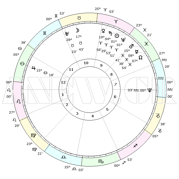 | | ΘΕΣΕΙΣ ΠΛΑΝΗΤΩΝ ΑΣΤΡΟΛΟΓΙΚΟΥ ΧΑΡΤΗ ΤΗΣ ΣΤΙΓΜΗΣ ΑΥΤΗΣ | | | | Πλανήτης | Ζώδιο | Μοίρες | Δεκαήμ. | Σε οίκο | Απόκλιση | | Ακμές των οίκων | | Ηλιος | Κριός | 01°49' | Πρώτο | 10 | 00 N 43 | | 1ος | 17°09' | Καρκίνος | | Σελήνη | Ταύρος | 16°48' | Δεύτερο | 11 | 21 N 30 | | 2ος | 07°37' | Λέων | | Ερμής | Ιχθείς | 08°37' | Πρώτο | 9 | 07 S 47 | | 3ος | 01°00' | Παρθένος | | Αφροδίτη | Κριός | 19°51' | Δεύτερο | 10 | 07 N 01 | | 4ος | 00°10' | Ζυγός | | Αρης | Ιχθείς | 15°38' | Δεύτερο | 9 | 06 S 39 | | 5ος | 06°01' | Σκορπιός | | Δίας | Καρκίνος | 15°18' | Δεύτερο | 12 | 22 N 55 | | 6ος | 13°53' | Τοξότης | | Κρόνος | Κριός | 04°28' | Πρώτο | 10 | 00 S 11 | | 7ος | 17°09' | Αιγόκερως | | Ουρανός | Ταύρος | 28°23' | Τρίτο | 11 | 19 N 37 | | 8ος | 07°37' | Υδροχόος | | Ποσειδώνας | Κριός | 01°51' | Πρώτο | 10 | 00 S 28 | | 9ος | 01°00' | Ιχθείς | | Πλούτωνας | Υδροχόος | 05°03' | Πρώτο | 7 | 22 S 48 | | 10ος | 00°10' | Κριός | | Β. Δεσμός | Ιχθείς | 07°55' | Πρώτο | 9 | 08 S 36 | | 11ος | 06°01' | Ταύρος | | Ωροσκόπος | Καρκίνος | 17°09' | Δεύτερο | | | 12ος | 13°53' | Δίδυμοι | | Μεσουράνημα | Κριός | 00°10' | Πρώτο | | | |