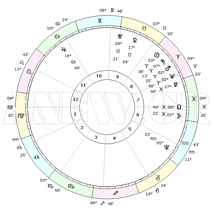 | | ΘΕΣΕΙΣ ΠΛΑΝΗΤΩΝ ΑΣΤΡΟΛΟΓΙΚΟΥ ΧΑΡΤΗ ΤΗΣ ΣΤΙΓΜΗΣ ΑΥΤΗΣ | | | | Πλανήτης | Ζώδιο | Μοίρες | Δεκαήμ. | Σε οίκο | Απόκλιση | | Ακμές των οίκων | | Ηλιος | Κριός | 23°35' | Τρίτο | 9 | 09 N 09 | | 1ος | 24°48' | Λέων | | Σελήνη | Ιχθείς | 01°42' | Πρώτο | 7 | 11 S 25 | | 2ος | 18°07' | Παρθένος | | Ερμής | Ιχθείς | 27°45' | Τρίτο | 8 | 03 S 13 | | 3ος | 16°17' | Ζυγός | | Αφροδίτη | Ταύρος | 17°00' | Δεύτερο | 9 | 17 N 00 | | 4ος | 19°06' | Σκορπιός | | Αρης | Κριός | 02°53' | Πρώτο | 8 | 00 N 14 | | 5ος | 23°40' | Τοξότης | | Δίας | Καρκίνος | 16°49' | Δεύτερο | 11 | 22 N 45 | | 6ος | 26°04' | Αιγόκερως | | Κρόνος | Κριός | 07°12' | Πρώτο | 8 | 00 N 53 | | 7ος | 24°48' | Υδροχόος | | Ουρανός | Ταύρος | 29°21' | Τρίτο | 10 | 19 N 50 | | 8ος | 18°07' | Ιχθείς | | Ποσειδώνας | Κριός | 02°40' | Πρώτο | 8 | 00 S 09 | | 9ος | 16°17' | Κριός | | Πλούτωνας | Υδροχόος | 05°23' | Πρώτο | 6 | 22 S 47 | | 10ος | 19°06' | Ταύρος | | Β. Δεσμός | Ιχθείς | 06°44' | Πρώτο | 7 | 09 S 02 | | 11ος | 23°40' | Δίδυμοι | | Ωροσκόπος | Λέων | 24°48' | Τρίτο | | | 12ος | 26°04' | Καρκίνος | | Μεσουράνημα | Ταύρος | 19°06' | Δεύτερο | | | |
