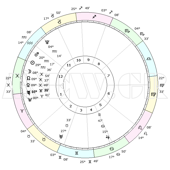 | | ΘΕΣΕΙΣ ΠΛΑΝΗΤΩΝ ΑΣΤΡΟΛΟΓΙΚΟΥ ΧΑΡΤΗ ΤΗΣ ΣΤΙΓΜΗΣ ΑΥΤΗΣ | | | | Πλανήτης | Ζώδιο | Μοίρες | Δεκαήμ. | Σε οίκο | Απόκλιση | | Ακμές των οίκων | | Ηλιος | Υδροχόος | 29°32' | Τρίτο | 1 | 11 S 38 | | 1ος | 16°52' | Υδροχόος | | Σελήνη | Ιχθείς | 08°02' | Πρώτο | 1 | 08 S 38 | | 2ος | 02°38' | Κριός | | Ερμής | Ιχθείς | 17°30' | Δεύτερο | 1 | 04 S 12 | | 3ος | 07°58' | Ταύρος | | Αφροδίτη | Ιχθείς | 09°44' | Πρώτο | 1 | 09 S 16 | | 4ος | 03°53' | Δίδυμοι | | Αρης | Υδροχόος | 20°14' | Τρίτο | 1 | 15 S 46 | | 5ος | 25°47' | Δίδυμοι | | Δίας | Καρκίνος | 15°48'R | Δεύτερο | 5 | 22 N 50 | | 6ος | 18°09' | Καρκίνος | | Κρόνος | Κριός | 00°35' | Πρώτο | 1 | 01 S 44 | | 7ος | 16°52' | Λέων | | Ουρανός | Ταύρος | 27°33' | Τρίτο | 3 | 19 N 26 | | 8ος | 02°38' | Ζυγός | | Ποσειδώνας | Κριός | 00°40' | Πρώτο | 1 | 00 S 56 | | 9ος | 07°58' | Σκορπιός | | Πλούτωνας | Υδροχόος | 04°14' | Πρώτο | 12 | 22 S 56 | | 10ος | 03°53' | Τοξότης | | Β. Δεσμός | Ιχθείς | 09°37' | Πρώτο | 1 | 07 S 58 | | 11ος | 25°47' | Τοξότης | | Ωροσκόπος | Υδροχόος | 16°52' | Δεύτερο | | | 12ος | 18°09' | Αιγόκερως | | Μεσουράνημα | Τοξότης | 03°53' | Πρώτο | | | |