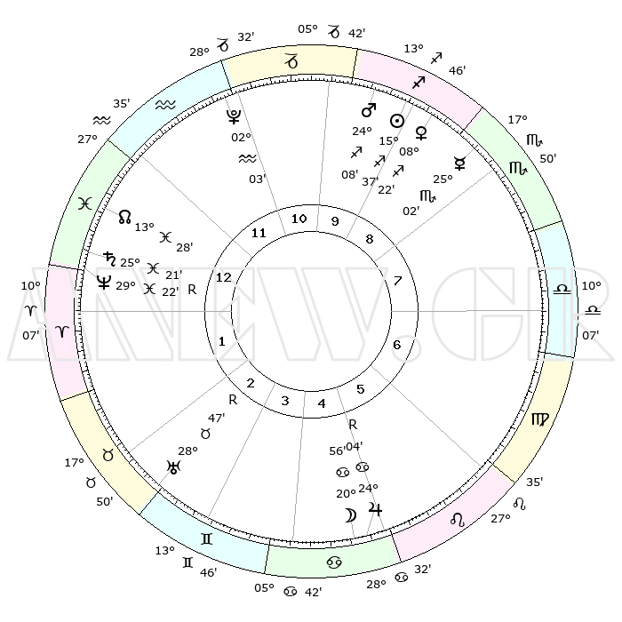 | | ΘΕΣΕΙΣ ΠΛΑΝΗΤΩΝ ΑΣΤΡΟΛΟΓΙΚΟΥ ΧΑΡΤΗ ΤΗΣ ΣΤΙΓΜΗΣ ΑΥΤΗΣ | | | | Πλανήτης | Ζώδιο | Μοίρες | Δεκαήμ. | Σε οίκο | Απόκλιση | | Ακμές των οίκων | | Ηλιος | Τοξότης | 15°24' | Δεύτερο | 12 | 22 S 38 | | 1ος | 28°52' | Τοξότης | | Σελήνη | Καρκίνος | 17°46' | Δεύτερο | 7 | 26 N 21 | | 2ος | 05°44' | Υδροχόος | | Ερμής | Σκορπιός | 24°49' | Τρίτο | 11 | 16 S 39 | | 3ος | 15°39' | Ιχθείς | | Αφροδίτη | Τοξότης | 08°06' | Πρώτο | 11 | 21 S 11 | | 4ος | 19°46' | Κριός | | Αρης | Τοξότης | 23°58' | Τρίτο | 12 | 24 S 01 | | 5ος | 16°16' | Ταύρος | | Δίας | Καρκίνος | 24°05'R | Τρίτο | 7 | 21 N 28 | | 6ος | 08°09' | Δίδυμοι | | Κρόνος | Ιχθείς | 25°21' | Τρίτο | 3 | 04 S 00 | | 7ος | 28°52' | Δίδυμοι | | Ουρανός | Ταύρος | 28°48'R | Τρίτο | 5 | 19 N 41 | | 8ος | 05°44' | Λέων | | Ποσειδώνας | Ιχθείς | 29°23'R | Τρίτο | 3 | 01 S 29 | | 9ος | 15°39' | Παρθένος | | Πλούτωνας | Υδροχόος | 02°03' | Πρώτο | 1 | 23 S 22 | | 10ος | 19°46' | Ζυγός | | Β. Δεσμός | Ιχθείς | 13°29' | Δεύτερο | 2 | 06 S 30 | | 11ος | 16°16' | Σκορπιός | | Ωροσκόπος | Τοξότης | 28°52' | Τρίτο | | | 12ος | 08°09' | Τοξότης | | Μεσουράνημα | Ζυγός | 19°46' | Δεύτερο | | | |