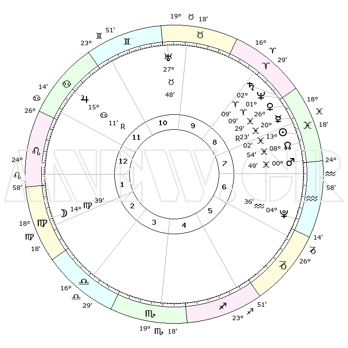 | | ΘΕΣΕΙΣ ΠΛΑΝΗΤΩΝ ΑΣΤΡΟΛΟΓΙΚΟΥ ΧΑΡΤΗ ΤΗΣ ΣΤΙΓΜΗΣ ΑΥΤΗΣ | | | | Πλανήτης | Ζώδιο | Μοίρες | Δεκαήμ. | Σε οίκο | Απόκλιση | | Ακμές των οίκων | | Ηλιος | Ιχθείς | 12°58' | Δεύτερο | 8 | 06 S 41 | | 1ος | 06°28' | Λέων | | Σελήνη | Παρθένος | 13°48' | Δεύτερο | 2 | 05 N 58 | | 2ος | 27°59' | Λέων | | Ερμής | Ιχθείς | 20°26'R | Τρίτο | 8 | 00 S 29 | | 3ος | 23°55' | Παρθένος | | Αφροδίτη | Ιχθείς | 26°24' | Τρίτο | 9 | 02 S 38 | | 4ος | 25°40' | Ζυγός | | Αρης | Ιχθείς | 00°46' | Πρώτο | 8 | 12 S 13 | | 5ος | 01°28' | Τοξότης | | Δίας | Καρκίνος | 15°11'R | Δεύτερο | 12 | 22 N 55 | | 6ος | 06°09' | Αιγόκερως | | Κρόνος | Κριός | 02°09' | Πρώτο | 9 | 01 S 06 | | 7ος | 06°28' | Υδροχόος | | Ουρανός | Ταύρος | 27°47' | Τρίτο | 10 | 19 N 29 | | 8ος | 27°59' | Υδροχόος | | Ποσειδώνας | Κριός | 01°08' | Πρώτο | 9 | 00 S 45 | | 9ος | 23°55' | Ιχθείς | | Πλούτωνας | Υδροχόος | 04°36' | Πρώτο | 6 | 22 S 52 | | 10ος | 25°40' | Κριός | | Β. Δεσμός | Ιχθείς | 08°55' | Πρώτο | 8 | 08 S 14 | | 11ος | 01°28' | Δίδυμοι | | Ωροσκόπος | Λέων | 06°28' | Πρώτο | | | 12ος | 06°09' | Καρκίνος | | Μεσουράνημα | Κριός | 25°40' | Τρίτο | | | |