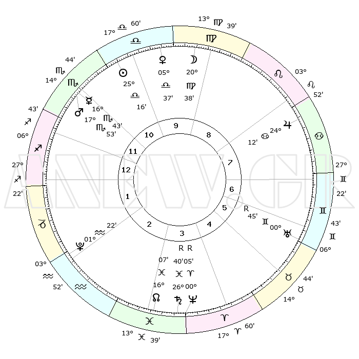 | ΘΕΣΕΙΣ ΠΛΑΝΗΤΩΝ ΑΣΤΡΟΛΟΓΙΚΟΥ ΧΑΡΤΗ ΤΗΣ ΣΤΙΓΜΗΣ ΑΥΤΗΣ | | Πλανήτης | Ζώδιο | Μοίρες | Δεκαήμ. | Σε οίκο | Απόκλιση | | Ακμές των οίκων | Ηλιος | Ζυγός | 24°55' | Τρίτο | 2 | 09 S 39 | | 1ος | 12°28' | Παρθένος | Σελήνη | Παρθένος | 16°15' | Δεύτερο | 1 | 05 N 34 | | 2ος | 07°34' | Ζυγός | Ερμής | Σκορπιός | 16°14' | Δεύτερο | 3 | 18 S 39 | | 3ος | 07°11' | Σκορπιός | Αφροδίτη | Ζυγός | 05°11' | Πρώτο | 1 | 00 S 39 | | 4ος | 10°08' | Τοξότης | Αρης | Σκορπιός | 17°38' | Δεύτερο | 3 | 17 S 20 | | 5ος | 13°36' | Αιγόκερως | Δίας | Καρκίνος | 24°11' | Τρίτο | 11 | 21 N 20 | | 6ος | 14°46' | Υδροχόος | Κρόνος | Ιχθείς | 26°41'R | Τρίτο | 7 | 03 S 36 | | 7ος | 12°28' | Ιχθείς | Ουρανός | Δίδυμοι | 00°46'R | Πρώτο | 9 | 20 N 06 | | 8ος | 07°34' | Κριός | Ποσειδώνας | Κριός | 00°06'R | Πρώτο | 7 | 01 S 13 | | 9ος | 07°11' | Ταύρος | Πλούτωνας | Υδροχόος | 01°22' | Πρώτο | 5 | 23 S 32 | | 10ος | 10°08' | Δίδυμοι | Β. Δεσμός | Ιχθείς | 16°08' | Δεύτερο | 7 | 05 S 28 | | 11ος | 13°36' | Καρκίνος | Ωροσκόπος | Παρθένος | 12°28' | Δεύτερο | | | 12ος | 14°46' | Λέων | Μεσουράνημα | Δίδυμοι | 10°08' | Δεύτερο | | | |