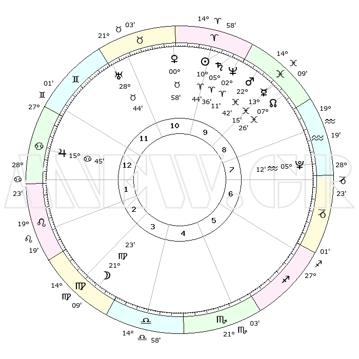 | | ΘΕΣΕΙΣ ΠΛΑΝΗΤΩΝ ΑΣΤΡΟΛΟΓΙΚΟΥ ΧΑΡΤΗ ΤΗΣ ΣΤΙΓΜΗΣ ΑΥΤΗΣ | | | | Πλανήτης | Ζώδιο | Μοίρες | Δεκαήμ. | Σε οίκο | Απόκλιση | | Ακμές των οίκων | | Ηλιος | Κριός | 10°41' | Δεύτερο | 10 | 04 N 14 | | 1ος | 09°45' | Καρκίνος | | Σελήνη | Παρθένος | 20°35' | Τρίτο | 3 | 02 N 45 | | 2ος | 00°12' | Λέων | | Ερμής | Ιχθείς | 13°12' | Δεύτερο | 9 | 07 S 43 | | 3ος | 22°48' | Λέων | | Αφροδίτη | Ταύρος | 00°54' | Πρώτο | 11 | 11 N 21 | | 4ος | 20°43' | Παρθένος | | Αρης | Ιχθείς | 22°39' | Τρίτο | 10 | 03 S 53 | | 5ος | 25°58' | Ζυγός | | Δίας | Καρκίνος | 15°44' | Δεύτερο | 1 | 22 N 52 | | 6ος | 04°57' | Τοξότης | | Κρόνος | Κριός | 05°35' | Πρώτο | 10 | 00 N 16 | | 7ος | 09°45' | Αιγόκερως | | Ουρανός | Ταύρος | 28°44' | Τρίτο | 11 | 19 N 42 | | 8ος | 00°12' | Υδροχόος | | Ποσειδώνας | Κριός | 02°11' | Πρώτο | 10 | 00 S 20 | | 9ος | 22°48' | Υδροχόος | | Πλούτωνας | Υδροχόος | 05°12' | Πρώτο | 8 | 22 S 47 | | 10ος | 20°43' | Ιχθείς | | Β. Δεσμός | Ιχθείς | 07°26' | Πρώτο | 9 | 08 S 47 | | 11ος | 25°58' | Κριός | | Ωροσκόπος | Καρκίνος | 09°45' | Πρώτο | | | 12ος | 04°57' | Δίδυμοι | | Μεσουράνημα | Ιχθείς | 20°43' | Τρίτο | | | |
