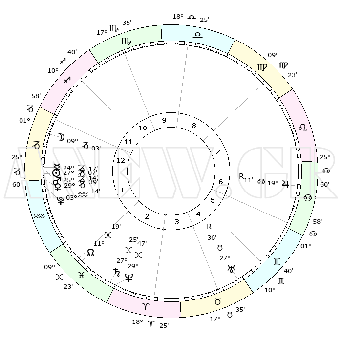| | ΘΕΣΕΙΣ ΠΛΑΝΗΤΩΝ ΑΣΤΡΟΛΟΓΙΚΟΥ ΧΑΡΤΗ ΤΗΣ ΣΤΙΓΜΗΣ ΑΥΤΗΣ | | | | Πλανήτης | Ζώδιο | Μοίρες | Δεκαήμ. | Σε οίκο | Απόκλιση | | Ακμές των οίκων | | Ηλιος | Αιγόκερως | 27°02' | Τρίτο | 1 | 20 S 45 | | 1ος | 29°09' | Τοξότης | | Σελήνη | Αιγόκερως | 08°09' | Πρώτο | 1 | 27 S 41 | | 2ος | 06°05' | Υδροχόος | | Ερμής | Αιγόκερως | 24°10' | Τρίτο | 1 | 23 S 09 | | 3ος | 16°01' | Ιχθείς | | Αφροδίτη | Αιγόκερως | 29°33' | Τρίτο | 1 | 21 S 15 | | 4ος | 20°05' | Κριός | | Αρης | Αιγόκερως | 25°10' | Τρίτο | 1 | 22 S 04 | | 5ος | 16°33' | Ταύρος | | Δίας | Καρκίνος | 19°11'R | Δεύτερο | 7 | 22 N 20 | | 6ος | 08°24' | Δίδυμοι | | Κρόνος | Ιχθείς | 27°25' | Τρίτο | 3 | 03 S 03 | | 7ος | 29°09' | Δίδυμοι | | Ουρανός | Ταύρος | 27°36'R | Τρίτο | 5 | 19 N 26 | | 8ος | 06°05' | Λέων | | Ποσειδώνας | Ιχθείς | 29°47' | Τρίτο | 3 | 01 S 18 | | 9ος | 16°01' | Παρθένος | | Πλούτωνας | Υδροχόος | 03°14' | Πρώτο | 1 | 23 S 07 | | 10ος | 20°05' | Ζυγός | | Β. Δεσμός | Ιχθείς | 11°19' | Δεύτερο | 2 | 07 S 19 | | 11ος | 16°33' | Σκορπιός | | Ωροσκόπος | Τοξότης | 29°09' | Τρίτο | | | 12ος | 08°24' | Τοξότης | | Μεσουράνημα | Ζυγός | 20°05' | Τρίτο | | | |