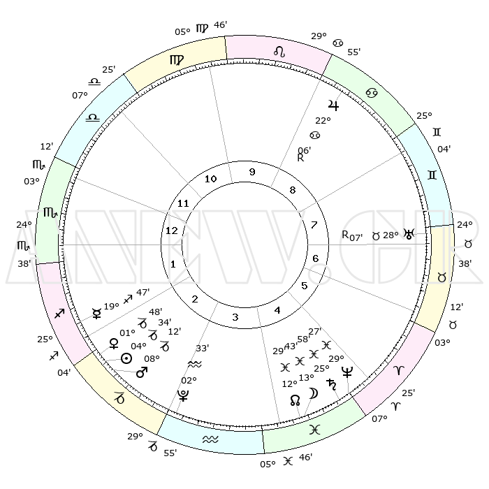 | | ΘΕΣΕΙΣ ΠΛΑΝΗΤΩΝ ΑΣΤΡΟΛΟΓΙΚΟΥ ΧΑΡΤΗ ΤΗΣ ΣΤΙΓΜΗΣ ΑΥΤΗΣ | | | | Πλανήτης | Ζώδιο | Μοίρες | Δεκαήμ. | Σε οίκο | Απόκλιση | | Ακμές των οίκων | | Ηλιος | Αιγόκερως | 04°29' | Πρώτο | 3 | 23 S 21 | | 1ος | 29°28' | Ζυγός | | Σελήνη | Ιχθείς | 12°35' | Δεύτερο | 5 | 06 S 44 | | 2ος | 27°51' | Σκορπιός | | Ερμής | Τοξότης | 19°39' | Δεύτερο | 2 | 22 S 54 | | 3ος | 29°45' | Τοξότης | | Αφροδίτη | Αιγόκερως | 01°42' | Πρώτο | 3 | 23 S 42 | | 4ος | 03°55' | Υδροχόος | | Αρης | Αιγόκερως | 08°08' | Πρώτο | 3 | 24 S 02 | | 5ος | 06°50' | Ιχθείς | | Δίας | Καρκίνος | 22°07'R | Τρίτο | 9 | 21 N 50 | | 6ος | 05°33' | Κριός | | Κρόνος | Ιχθείς | 25°58' | Τρίτο | 5 | 03 S 42 | | 7ος | 29°28' | Κριός | | Ουρανός | Ταύρος | 28°07'R | Τρίτο | 8 | 19 N 32 | | 8ος | 27°51' | Ταύρος | | Ποσειδώνας | Ιχθείς | 29°27' | Τρίτο | 5 | 01 S 27 | | 9ος | 29°45' | Δίδυμοι | | Πλούτωνας | Υδροχόος | 02°33' | Πρώτο | 3 | 23 S 15 | | 10ος | 03°55' | Λέων | | Β. Δεσμός | Ιχθείς | 12°29' | Δεύτερο | 5 | 06 S 52 | | 11ος | 06°50' | Παρθένος | | Ωροσκόπος | Ζυγός | 29°28' | Τρίτο | | | 12ος | 05°33' | Ζυγός | | Μεσουράνημα | Λέων | 03°55' | Πρώτο | | | |
