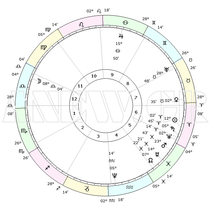| | ΘΕΣΕΙΣ ΠΛΑΝΗΤΩΝ ΑΣΤΡΟΛΟΓΙΚΟΥ ΧΑΡΤΗ ΤΗΣ ΣΤΙΓΜΗΣ ΑΥΤΗΣ | | | | Πλανήτης | Ζώδιο | Μοίρες | Δεκαήμ. | Σε οίκο | Απόκλιση | | Ακμές των οίκων | | Ηλιος | Κριός | 11°58' | Δεύτερο | 7 | 04 N 44 | | 1ος | 08°47' | Ζυγός | | Σελήνη | Ζυγός | 07°14' | Πρώτο | 12 | 05 S 09 | | 2ος | 05°58' | Σκορπιός | | Ερμής | Ιχθείς | 14°18' | Δεύτερο | 6 | 07 S 29 | | 3ος | 06°44' | Τοξότης | | Αφροδίτη | Ταύρος | 02°30' | Πρώτο | 7 | 11 N 57 | | 4ος | 09°53' | Αιγόκερως | | Αρης | Ιχθείς | 23°40' | Τρίτο | 6 | 03 S 28 | | 5ος | 12°49' | Υδροχόος | | Δίας | Καρκίνος | 15°50' | Δεύτερο | 10 | 22 N 52 | | 6ος | 12°53' | Ιχθείς | | Κρόνος | Κριός | 05°45' | Πρώτο | 6 | 00 N 20 | | 7ος | 08°47' | Κριός | | Ουρανός | Ταύρος | 28°48' | Τρίτο | 8 | 19 N 43 | | 8ος | 05°58' | Ταύρος | | Ποσειδώνας | Κριός | 02°14' | Πρώτο | 6 | 00 S 19 | | 9ος | 06°44' | Δίδυμοι | | Πλούτωνας | Υδροχόος | 05°14' | Πρώτο | 4 | 22 S 47 | | 10ος | 09°53' | Καρκίνος | | Β. Δεσμός | Ιχθείς | 07°22' | Πρώτο | 5 | 08 S 48 | | 11ος | 12°49' | Λέων | | Ωροσκόπος | Ζυγός | 08°47' | Πρώτο | | | 12ος | 12°53' | Παρθένος | | Μεσουράνημα | Καρκίνος | 09°53' | Πρώτο | | | |