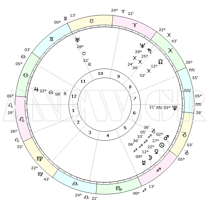 | | ΘΕΣΕΙΣ ΠΛΑΝΗΤΩΝ ΑΣΤΡΟΛΟΓΙΚΟΥ ΧΑΡΤΗ ΤΗΣ ΣΤΙΓΜΗΣ ΑΥΤΗΣ | | | | Πλανήτης | Ζώδιο | Μοίρες | Δεκαήμ. | Σε οίκο | Απόκλιση | | Ακμές των οίκων | | Ηλιος | Τοξότης | 26°37' | Τρίτο | 11 | 23 S 23 | | 1ος | 20°60' | Αιγόκερως | | Σελήνη | Τοξότης | 07°16' | Πρώτο | 11 | 26 S 26 | | 2ος | 03°21' | Ιχθείς | | Ερμής | Τοξότης | 08°28' | Πρώτο | 11 | 20 S 36 | | 3ος | 12°59' | Κριός | | Αφροδίτη | Τοξότης | 21°59' | Τρίτο | 11 | 23 S 10 | | 4ος | 13°04' | Ταύρος | | Αρης | Αιγόκερως | 02°16' | Πρώτο | 12 | 24 S 13 | | 5ος | 06°37' | Δίδυμοι | | Δίας | Καρκίνος | 23°01'R | Τρίτο | 7 | 21 N 40 | | 6ος | 27°50' | Δίδυμοι | | Κρόνος | Ιχθείς | 25°38' | Τρίτο | 2 | 03 S 51 | | 7ος | 20°60' | Καρκίνος | | Ουρανός | Ταύρος | 28°23'R | Τρίτο | 4 | 19 N 36 | | 8ος | 03°21' | Παρθένος | | Ποσειδώνας | Ιχθείς | 29°23' | Τρίτο | 2 | 01 S 28 | | 9ος | 12°59' | Ζυγός | | Πλούτωνας | Υδροχόος | 02°20' | Πρώτο | 1 | 23 S 18 | | 10ος | 13°04' | Σκορπιός | | Β. Δεσμός | Ιχθείς | 12°54' | Δεύτερο | 2 | 06 S 43 | | 11ος | 06°37' | Τοξότης | | Ωροσκόπος | Αιγόκερως | 20°60' | Τρίτο | | | 12ος | 27°50' | Τοξότης | | Μεσουράνημα | Σκορπιός | 13°04' | Δεύτερο | | | |