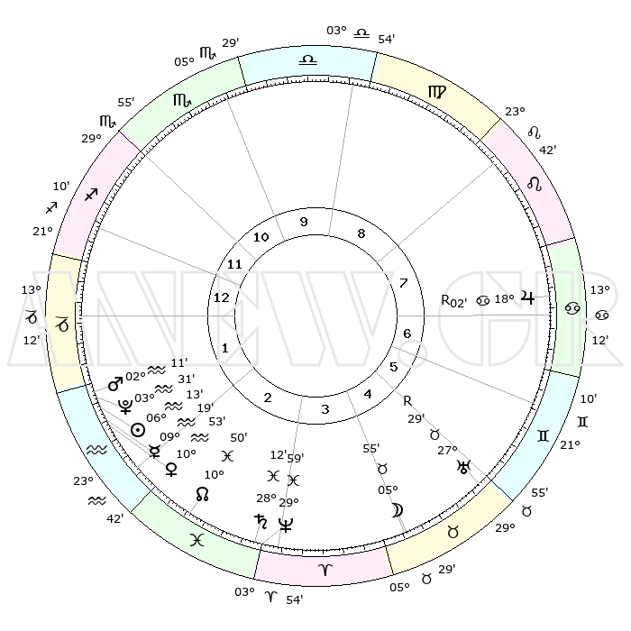 | | ΘΕΣΕΙΣ ΠΛΑΝΗΤΩΝ ΑΣΤΡΟΛΟΓΙΚΟΥ ΧΑΡΤΗ ΤΗΣ ΣΤΙΓΜΗΣ ΑΥΤΗΣ | | | | Πλανήτης | Ζώδιο | Μοίρες | Δεκαήμ. | Σε οίκο | Απόκλιση | | Ακμές των οίκων | | Ηλιος | Υδροχόος | 06°03' | Πρώτο | 3 | 18 S 45 | | 1ος | 24°36' | Σκορπιός | | Σελήνη | Ταύρος | 03°46' | Πρώτο | 6 | 16 N 45 | | 2ος | 25°03' | Τοξότης | | Ερμής | Υδροχόος | 09°03' | Πρώτο | 3 | 20 S 00 | | 3ος | 29°53' | Αιγόκερως | | Αφροδίτη | Υδροχόος | 10°41' | Δεύτερο | 3 | 18 S 46 | | 4ος | 05°44' | Ιχθείς | | Αρης | Υδροχόος | 02°04' | Πρώτο | 3 | 20 S 41 | | 5ος | 07°23' | Κριός | | Δίας | Καρκίνος | 18°03'R | Δεύτερο | 8 | 22 N 30 | | 6ος | 03°10' | Ταύρος | | Κρόνος | Ιχθείς | 28°11' | Τρίτο | 4 | 02 S 44 | | 7ος | 24°36' | Ταύρος | | Ουρανός | Ταύρος | 27°30'R | Τρίτο | 7 | 19 N 25 | | 8ος | 25°03' | Δίδυμοι | | Ποσειδώνας | Ιχθείς | 29°59' | Τρίτο | 4 | 01 S 13 | | 9ος | 29°53' | Καρκίνος | | Πλούτωνας | Υδροχόος | 03°31' | Πρώτο | 3 | 23 S 03 | | 10ος | 05°44' | Παρθένος | | Β. Δεσμός | Ιχθείς | 10°51' | Δεύτερο | 4 | 07 S 30 | | 11ος | 07°23' | Ζυγός | | Ωροσκόπος | Σκορπιός | 24°36' | Τρίτο | | | 12ος | 03°10' | Σκορπιός | | Μεσουράνημα | Παρθένος | 05°44' | Πρώτο | | | |