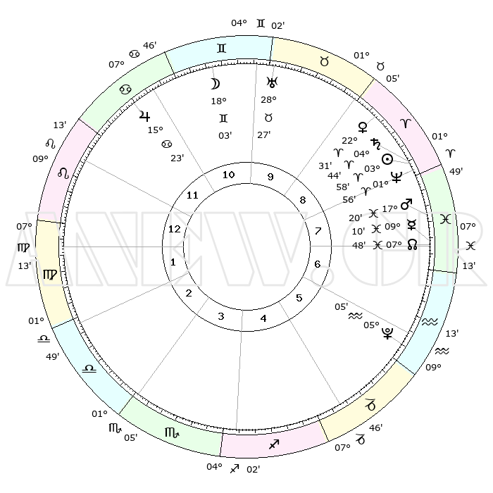 | | ΘΕΣΕΙΣ ΠΛΑΝΗΤΩΝ ΑΣΤΡΟΛΟΓΙΚΟΥ ΧΑΡΤΗ ΤΗΣ ΣΤΙΓΜΗΣ ΑΥΤΗΣ | | | | Πλανήτης | Ζώδιο | Μοίρες | Δεκαήμ. | Σε οίκο | Απόκλιση | | Ακμές των οίκων | | Ηλιος | Κριός | 03°54' | Πρώτο | 8 | 01 N 33 | | 1ος | 17°02' | Λέων | | Σελήνη | Δίδυμοι | 17°03' | Δεύτερο | 11 | 27 N 57 | | 2ος | 09°32' | Παρθένος | | Ερμής | Ιχθείς | 09°09' | Πρώτο | 7 | 08 S 02 | | 3ος | 06°50' | Ζυγός | | Αφροδίτη | Κριός | 22°26' | Τρίτο | 9 | 08 N 03 | | 4ος | 09°22' | Σκορπιός | | Αρης | Ιχθείς | 17°16' | Δεύτερο | 8 | 06 S 00 | | 5ος | 14°30' | Τοξότης | | Δίας | Καρκίνος | 15°23' | Δεύτερο | 11 | 22 N 55 | | 6ος | 17°44' | Αιγόκερως | | Κρόνος | Κριός | 04°44' | Πρώτο | 8 | 00 S 04 | | 7ος | 17°02' | Υδροχόος | | Ουρανός | Ταύρος | 28°27' | Τρίτο | 10 | 19 N 38 | | 8ος | 09°32' | Ιχθείς | | Ποσειδώνας | Κριός | 01°56' | Πρώτο | 8 | 00 S 26 | | 9ος | 06°50' | Κριός | | Πλούτωνας | Υδροχόος | 05°05' | Πρώτο | 6 | 22 S 48 | | 10ος | 09°22' | Ταύρος | | Β. Δεσμός | Ιχθείς | 07°48' | Πρώτο | 7 | 08 S 39 | | 11ος | 14°30' | Δίδυμοι | | Ωροσκόπος | Λέων | 17°02' | Δεύτερο | | | 12ος | 17°44' | Καρκίνος | | Μεσουράνημα | Ταύρος | 09°22' | Πρώτο | | | |
