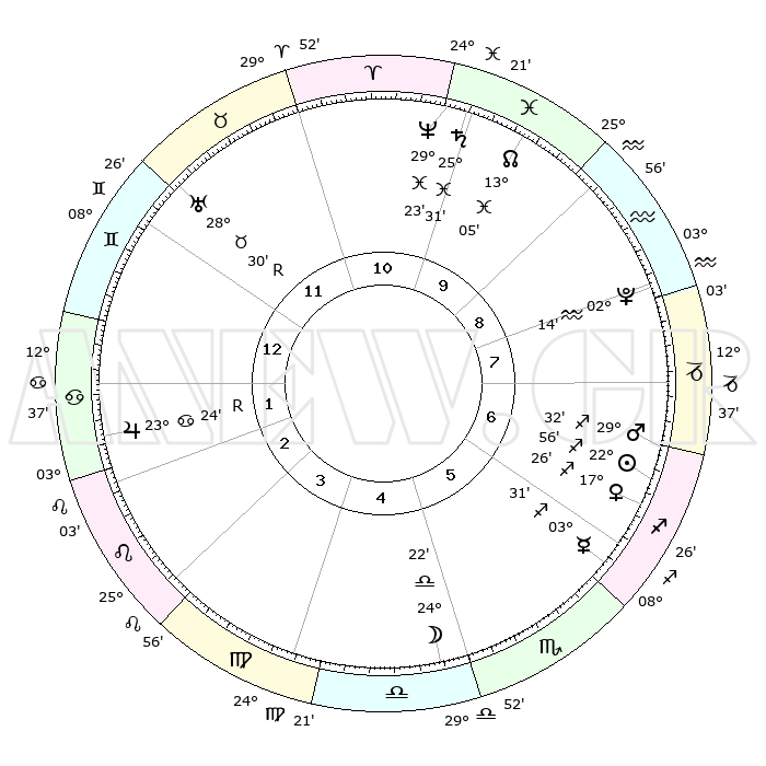 | | ΘΕΣΕΙΣ ΠΛΑΝΗΤΩΝ ΑΣΤΡΟΛΟΓΙΚΟΥ ΧΑΡΤΗ ΤΗΣ ΣΤΙΓΜΗΣ ΑΥΤΗΣ | | | | Πλανήτης | Ζώδιο | Μοίρες | Δεκαήμ. | Σε οίκο | Απόκλιση | | Ακμές των οίκων | | Ηλιος | Τοξότης | 22°39' | Τρίτο | 10 | 23 S 14 | | 1ος | 29°33' | Υδροχόος | | Σελήνη | Ζυγός | 20°56' | Τρίτο | 8 | 11 S 02 | | 2ος | 15°01' | Κριός | | Ερμής | Τοξότης | 03°08' | Πρώτο | 9 | 19 S 12 | | 3ος | 17°49' | Ταύρος | | Αφροδίτη | Τοξότης | 17°04' | Δεύτερο | 10 | 22 S 37 | | 4ος | 12°15' | Δίδυμοι | | Αρης | Τοξότης | 29°19' | Τρίτο | 10 | 24 S 12 | | 5ος | 03°57' | Καρκίνος | | Δίας | Καρκίνος | 23°26'R | Τρίτο | 5 | 21 N 36 | | 6ος | 27°27' | Καρκίνος | | Κρόνος | Ιχθείς | 25°31' | Τρίτο | 1 | 03 S 55 | | 7ος | 29°33' | Λέων | | Ουρανός | Ταύρος | 28°31'R | Τρίτο | 3 | 19 N 38 | | 8ος | 15°01' | Ζυγός | | Ποσειδώνας | Ιχθείς | 29°23' | Τρίτο | 1 | 01 S 29 | | 9ος | 17°49' | Σκορπιός | | Πλούτωνας | Υδροχόος | 02°14' | Πρώτο | 12 | 23 S 20 | | 10ος | 12°15' | Τοξότης | | Β. Δεσμός | Ιχθείς | 13°06' | Δεύτερο | 1 | 06 S 38 | | 11ος | 03°57' | Αιγόκερως | | Ωροσκόπος | Υδροχόος | 29°33' | Τρίτο | | | 12ος | 27°27' | Αιγόκερως | | Μεσουράνημα | Τοξότης | 12°15' | Δεύτερο | | | |