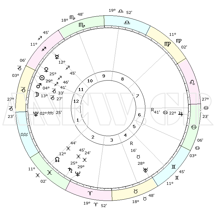 | | ΘΕΣΕΙΣ ΠΛΑΝΗΤΩΝ ΑΣΤΡΟΛΟΓΙΚΟΥ ΧΑΡΤΗ ΤΗΣ ΣΤΙΓΜΗΣ ΑΥΤΗΣ | | | | Πλανήτης | Ζώδιο | Μοίρες | Δεκαήμ. | Σε οίκο | Απόκλιση | | Ακμές των οίκων | | Ηλιος | Τοξότης | 29°37' | Τρίτο | 12 | 23 S 26 | | 1ος | 01°53' | Αιγόκερως | | Σελήνη | Αιγόκερως | 12°36' | Δεύτερο | 1 | 27 S 07 | | 2ος | 09°30' | Υδροχόος | | Ερμής | Τοξότης | 12°39' | Δεύτερο | 12 | 21 S 35 | | 3ος | 19°37' | Ιχθείς | | Αφροδίτη | Τοξότης | 25°41' | Τρίτο | 12 | 23 S 27 | | 4ος | 23°15' | Κριός | | Αρης | Αιγόκερως | 04°30' | Πρώτο | 1 | 24 S 11 | | 5ος | 19°17' | Ταύρος | | Δίας | Καρκίνος | 22°41'R | Τρίτο | 7 | 21 N 44 | | 6ος | 10°58' | Δίδυμοι | | Κρόνος | Ιχθείς | 25°45' | Τρίτο | 3 | 03 S 48 | | 7ος | 01°53' | Καρκίνος | | Ουρανός | Ταύρος | 28°16'R | Τρίτο | 5 | 19 N 35 | | 8ος | 09°30' | Λέων | | Ποσειδώνας | Ιχθείς | 29°24' | Τρίτο | 3 | 01 S 28 | | 9ος | 19°37' | Παρθένος | | Πλούτωνας | Υδροχόος | 02°25' | Πρώτο | 1 | 23 S 17 | | 10ος | 23°15' | Ζυγός | | Β. Δεσμός | Ιχθείς | 12°44' | Δεύτερο | 2 | 06 S 47 | | 11ος | 19°17' | Σκορπιός | | Ωροσκόπος | Αιγόκερως | 01°53' | Πρώτο | | | 12ος | 10°58' | Τοξότης | | Μεσουράνημα | Ζυγός | 23°15' | Τρίτο | | | |
