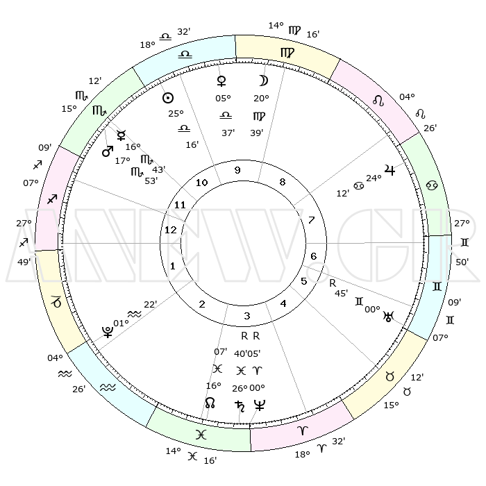 | ΘΕΣΕΙΣ ΠΛΑΝΗΤΩΝ ΑΣΤΡΟΛΟΓΙΚΟΥ ΧΑΡΤΗ ΤΗΣ ΣΤΙΓΜΗΣ ΑΥΤΗΣ | | Πλανήτης | Ζώδιο | Μοίρες | Δεκαήμ. | Σε οίκο | Απόκλιση | | Ακμές των οίκων | Ηλιος | Ζυγός | 25°11' | Τρίτο | 11 | 09 S 45 | | 1ος | 01°52' | Τοξότης | Σελήνη | Παρθένος | 19°36' | Δεύτερο | 10 | 03 N 59 | | 2ος | 03°15' | Αιγόκερως | Ερμής | Σκορπιός | 16°36' | Δεύτερο | 12 | 18 S 47 | | 3ος | 09°16' | Υδροχόος | Αφροδίτη | Ζυγός | 05°31' | Πρώτο | 10 | 00 S 47 | | 4ος | 15°21' | Ιχθείς | Αρης | Σκορπιός | 17°49' | Δεύτερο | 12 | 17 S 23 | | 5ος | 16°09' | Κριός | Δίας | Καρκίνος | 24°12' | Τρίτο | 8 | 21 N 19 | | 6ος | 10°57' | Ταύρος | Κρόνος | Ιχθείς | 26°40'R | Τρίτο | 4 | 03 S 37 | | 7ος | 01°52' | Δίδυμοι | Ουρανός | Δίδυμοι | 00°45'R | Πρώτο | 6 | 20 N 06 | | 8ος | 03°15' | Καρκίνος | Ποσειδώνας | Κριός | 00°06'R | Πρώτο | 4 | 01 S 13 | | 9ος | 09°16' | Λέων | Πλούτωνας | Υδροχόος | 01°22' | Πρώτο | 2 | 23 S 32 | | 10ος | 15°21' | Παρθένος | Β. Δεσμός | Ιχθείς | 16°07' | Δεύτερο | 4 | 05 S 28 | | 11ος | 16°09' | Ζυγός | Ωροσκόπος | Τοξότης | 01°52' | Πρώτο | | | 12ος | 10°57' | Σκορπιός | Μεσουράνημα | Παρθένος | 15°21' | Δεύτερο | | | |