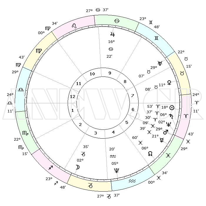| | ΘΕΣΕΙΣ ΠΛΑΝΗΤΩΝ ΑΣΤΡΟΛΟΓΙΚΟΥ ΧΑΡΤΗ ΤΗΣ ΣΤΙΓΜΗΣ ΑΥΤΗΣ | | | | Πλανήτης | Ζώδιο | Μοίρες | Δεκαήμ. | Σε οίκο | Απόκλιση | | Ακμές των οίκων | | Ηλιος | Κριός | 18°49' | Δεύτερο | 7 | 07 N 22 | | 1ος | 03°34' | Ζυγός | | Σελήνη | Αιγόκερως | 01°45' | Πρώτο | 3 | 28 S 09 | | 2ος | 00°25' | Σκορπιός | | Ερμής | Ιχθείς | 21°34' | Τρίτο | 6 | 05 S 24 | | 3ος | 00°59' | Τοξότης | | Αφροδίτη | Ταύρος | 11°03' | Δεύτερο | 8 | 15 N 02 | | 4ος | 04°01' | Αιγόκερως | | Αρης | Ιχθείς | 29°06' | Τρίτο | 6 | 01 S 17 | | 5ος | 06°57' | Υδροχόος | | Δίας | Καρκίνος | 16°22' | Δεύτερο | 10 | 22 N 48 | | 6ος | 07°15' | Ιχθείς | | Κρόνος | Κριός | 06°37' | Πρώτο | 7 | 00 N 40 | | 7ος | 03°34' | Κριός | | Ουρανός | Ταύρος | 29°07' | Τρίτο | 8 | 19 N 47 | | 8ος | 00°25' | Ταύρος | | Ποσειδώνας | Κριός | 02°30' | Πρώτο | 6 | 00 S 13 | | 9ος | 00°59' | Δίδυμοι | | Πλούτωνας | Υδροχόος | 05°20' | Πρώτο | 4 | 22 S 47 | | 10ος | 04°01' | Καρκίνος | | Β. Δεσμός | Ιχθείς | 06°60' | Πρώτο | 5 | 08 S 56 | | 11ος | 06°57' | Λέων | | Ωροσκόπος | Ζυγός | 03°34' | Πρώτο | | | 12ος | 07°15' | Παρθένος | | Μεσουράνημα | Καρκίνος | 04°01' | Πρώτο | | | |