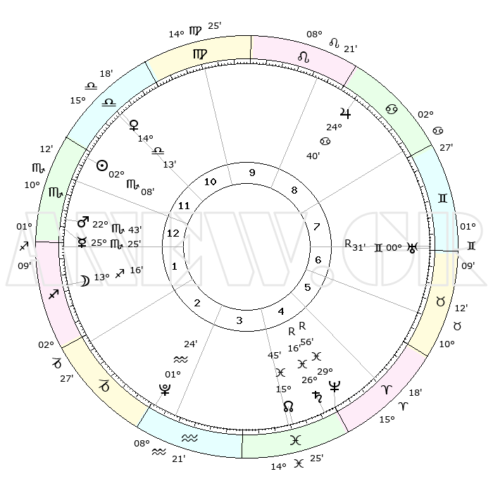| | ΘΕΣΕΙΣ ΠΛΑΝΗΤΩΝ ΑΣΤΡΟΛΟΓΙΚΟΥ ΧΑΡΤΗ ΤΗΣ ΣΤΙΓΜΗΣ ΑΥΤΗΣ | | | | Πλανήτης | Ζώδιο | Μοίρες | Δεκαήμ. | Σε οίκο | Απόκλιση | | Ακμές των οίκων | | Ηλιος | Σκορπιός | 01°41' | Πρώτο | 4 | 12 S 03 | | 1ος | 19°41' | Καρκίνος | | Σελήνη | Τοξότης | 07°56' | Πρώτο | 5 | 26 S 37 | | 2ος | 10°13' | Λέων | | Ερμής | Σκορπιός | 24°53' | Τρίτο | 5 | 21 S 31 | | 3ος | 03°55' | Παρθένος | | Αφροδίτη | Ζυγός | 13°39' | Δεύτερο | 4 | 03 S 58 | | 4ος | 03°29' | Ζυγός | | Αρης | Σκορπιός | 22°24' | Τρίτο | 5 | 18 S 41 | | 5ος | 09°28' | Σκορπιός | | Δίας | Καρκίνος | 24°38' | Τρίτο | 1 | 21 N 16 | | 6ος | 16°55' | Τοξότης | | Κρόνος | Ιχθείς | 26°17'R | Τρίτο | 9 | 03 S 45 | | 7ος | 19°41' | Αιγόκερως | | Ουρανός | Δίδυμοι | 00°32'R | Πρώτο | 11 | 20 N 03 | | 8ος | 10°13' | Υδροχόος | | Ποσειδώνας | Ιχθείς | 29°56'R | Τρίτο | 9 | 01 S 17 | | 9ος | 03°55' | Ιχθείς | | Πλούτωνας | Υδροχόος | 01°24' | Πρώτο | 7 | 23 S 32 | | 10ος | 03°29' | Κριός | | Β. Δεσμός | Ιχθείς | 15°47' | Δεύτερο | 9 | 05 S 36 | | 11ος | 09°28' | Ταύρος | | Ωροσκόπος | Καρκίνος | 19°41' | Δεύτερο | | | 12ος | 16°55' | Δίδυμοι | | Μεσουράνημα | Κριός | 03°29' | Πρώτο | | | |