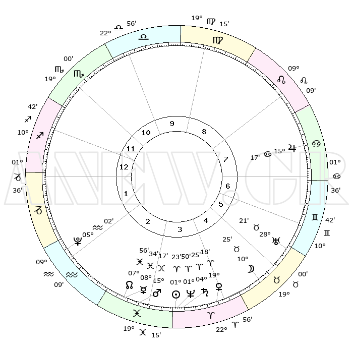 | | ΘΕΣΕΙΣ ΠΛΑΝΗΤΩΝ ΑΣΤΡΟΛΟΓΙΚΟΥ ΧΑΡΤΗ ΤΗΣ ΣΤΙΓΜΗΣ ΑΥΤΗΣ | | | | Πλανήτης | Ζώδιο | Μοίρες | Δεκαήμ. | Σε οίκο | Απόκλιση | | Ακμές των οίκων | | Ηλιος | Κριός | 01°18' | Πρώτο | 4 | 00 N 31 | | 1ος | 07°42' | Τοξότης | | Σελήνη | Ταύρος | 09°18' | Πρώτο | 5 | 18 N 55 | | 2ος | 10°01' | Αιγόκερως | | Ερμής | Ιχθείς | 08°33' | Πρώτο | 3 | 07 S 42 | | 3ος | 17°01' | Υδροχόος | | Αφροδίτη | Κριός | 19°13' | Δεύτερο | 4 | 06 N 45 | | 4ος | 23°05' | Ιχθείς | | Αρης | Ιχθείς | 15°13' | Δεύτερο | 3 | 06 S 49 | | 5ος | 23°03' | Κριός | | Δίας | Καρκίνος | 15°16' | Δεύτερο | 8 | 22 N 55 | | 6ος | 17°05' | Ταύρος | | Κρόνος | Κριός | 04°24' | Πρώτο | 4 | 00 S 12 | | 7ος | 07°42' | Δίδυμοι | | Ουρανός | Ταύρος | 28°21' | Τρίτο | 6 | 19 N 37 | | 8ος | 10°01' | Καρκίνος | | Ποσειδώνας | Κριός | 01°50' | Πρώτο | 4 | 00 S 28 | | 9ος | 17°01' | Λέων | | Πλούτωνας | Υδροχόος | 05°02' | Πρώτο | 2 | 22 S 48 | | 10ος | 23°05' | Παρθένος | | Β. Δεσμός | Ιχθείς | 07°56' | Πρώτο | 3 | 08 S 35 | | 11ος | 23°03' | Ζυγός | | Ωροσκόπος | Τοξότης | 07°42' | Πρώτο | | | 12ος | 17°04' | Σκορπιός | | Μεσουράνημα | Παρθένος | 23°05' | Τρίτο | | | |