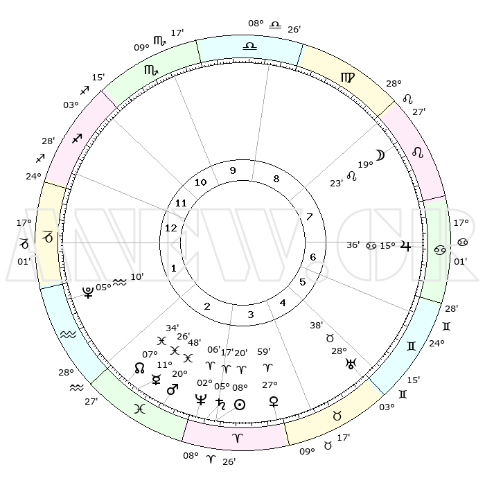 | | ΘΕΣΕΙΣ ΠΛΑΝΗΤΩΝ ΑΣΤΡΟΛΟΓΙΚΟΥ ΧΑΡΤΗ ΤΗΣ ΣΤΙΓΜΗΣ ΑΥΤΗΣ | | | | Πλανήτης | Ζώδιο | Μοίρες | Δεκαήμ. | Σε οίκο | Απόκλιση | | Ακμές των οίκων | | Ηλιος | Κριός | 08°16' | Πρώτο | 3 | 03 N 17 | | 1ος | 24°27' | Τοξότης | | Σελήνη | Λέων | 18°30' | Δεύτερο | 8 | 17 N 00 | | 2ος | 00°14' | Υδροχόος | | Ερμής | Ιχθείς | 11°24' | Δεύτερο | 3 | 08 S 01 | | 3ος | 09°44' | Ιχθείς | | Αφροδίτη | Κριός | 27°54' | Τρίτο | 4 | 10 N 12 | | 4ος | 14°29' | Κριός | | Αρης | Ιχθείς | 20°45' | Τρίτο | 3 | 04 S 38 | | 5ος | 11°42' | Ταύρος | | Δίας | Καρκίνος | 15°36' | Δεύτερο | 7 | 22 N 53 | | 6ος | 03°55' | Δίδυμοι | | Κρόνος | Κριός | 05°17' | Πρώτο | 3 | 00 N 09 | | 7ος | 24°27' | Δίδυμοι | | Ουρανός | Ταύρος | 28°38' | Τρίτο | 5 | 19 N 41 | | 8ος | 00°14' | Λέων | | Ποσειδώνας | Κριός | 02°06' | Πρώτο | 3 | 00 S 22 | | 9ος | 09°44' | Παρθένος | | Πλούτωνας | Υδροχόος | 05°10' | Πρώτο | 2 | 22 S 48 | | 10ος | 14°29' | Ζυγός | | Β. Δεσμός | Ιχθείς | 07°34' | Πρώτο | 2 | 08 S 44 | | 11ος | 11°42' | Σκορπιός | | Ωροσκόπος | Τοξότης | 24°27' | Τρίτο | | | 12ος | 03°55' | Τοξότης | | Μεσουράνημα | Ζυγός | 14°29' | Δεύτερο | | | |