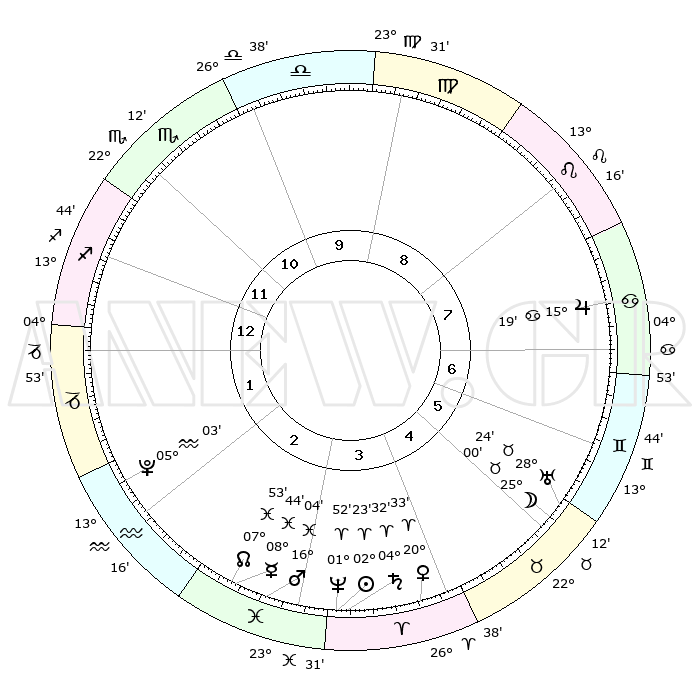 | | ΘΕΣΕΙΣ ΠΛΑΝΗΤΩΝ ΑΣΤΡΟΛΟΓΙΚΟΥ ΧΑΡΤΗ ΤΗΣ ΣΤΙΓΜΗΣ ΑΥΤΗΣ | | | | Πλανήτης | Ζώδιο | Μοίρες | Δεκαήμ. | Σε οίκο | Απόκλιση | | Ακμές των οίκων | | Ηλιος | Κριός | 02°18' | Πρώτο | 4 | 00 N 55 | | 1ος | 13°06' | Τοξότης | | Σελήνη | Ταύρος | 24°01' | Τρίτο | 6 | 23 N 40 | | 2ος | 16°25' | Αιγόκερως | | Ερμής | Ιχθείς | 08°43' | Πρώτο | 3 | 07 S 51 | | 3ος | 24°19' | Υδροχόος | | Αφροδίτη | Κριός | 20°28' | Τρίτο | 4 | 07 N 16 | | 4ος | 00°09' | Κριός | | Αρης | Ιχθείς | 16°01' | Δεύτερο | 3 | 06 S 30 | | 5ος | 29°16' | Κριός | | Δίας | Καρκίνος | 15°19' | Δεύτερο | 7 | 22 N 55 | | 6ος | 22°39' | Ταύρος | | Κρόνος | Κριός | 04°32' | Πρώτο | 4 | 00 S 09 | | 7ος | 13°06' | Δίδυμοι | | Ουρανός | Ταύρος | 28°24' | Τρίτο | 6 | 19 N 38 | | 8ος | 16°25' | Καρκίνος | | Ποσειδώνας | Κριός | 01°52' | Πρώτο | 4 | 00 S 27 | | 9ος | 24°19' | Λέων | | Πλούτωνας | Υδροχόος | 05°03' | Πρώτο | 2 | 22 S 48 | | 10ος | 00°09' | Ζυγός | | Β. Δεσμός | Ιχθείς | 07°53' | Πρώτο | 3 | 08 S 37 | | 11ος | 29°16' | Ζυγός | | Ωροσκόπος | Τοξότης | 13°06' | Δεύτερο | | | 12ος | 22°39' | Σκορπιός | | Μεσουράνημα | Ζυγός | 00°09' | Πρώτο | | | |
