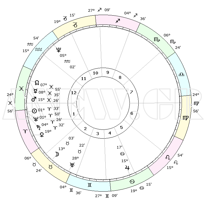 | | ΘΕΣΕΙΣ ΠΛΑΝΗΤΩΝ ΑΣΤΡΟΛΟΓΙΚΟΥ ΧΑΡΤΗ ΤΗΣ ΣΤΙΓΜΗΣ ΑΥΤΗΣ | | | | Πλανήτης | Ζώδιο | Μοίρες | Δεκαήμ. | Σε οίκο | Απόκλιση | | Ακμές των οίκων | | Ηλιος | Κριός | 01°25' | Πρώτο | 2 | 00 N 34 | | 1ος | 17°24' | Αιγόκερως | | Σελήνη | Ταύρος | 11°03' | Δεύτερο | 4 | 19 N 33 | | 2ος | 28°56' | Υδροχόος | | Ερμής | Ιχθείς | 08°34' | Πρώτο | 2 | 07 S 43 | | 3ος | 08°53' | Κριός | | Αφροδίτη | Κριός | 19°21' | Δεύτερο | 3 | 06 N 49 | | 4ος | 09°40' | Ταύρος | | Αρης | Ιχθείς | 15°19' | Δεύτερο | 2 | 06 S 46 | | 5ος | 03°35' | Δίδυμοι | | Δίας | Καρκίνος | 15°17' | Δεύτερο | 6 | 22 N 55 | | 6ος | 24°48' | Δίδυμοι | | Κρόνος | Κριός | 04°25' | Πρώτο | 2 | 00 S 12 | | 7ος | 17°24' | Καρκίνος | | Ουρανός | Ταύρος | 28°22' | Τρίτο | 4 | 19 N 37 | | 8ος | 28°56' | Λέων | | Ποσειδώνας | Κριός | 01°50' | Πρώτο | 2 | 00 S 28 | | 9ος | 08°53' | Ζυγός | | Πλούτωνας | Υδροχόος | 05°02' | Πρώτο | 1 | 22 S 48 | | 10ος | 09°40' | Σκορπιός | | Β. Δεσμός | Ιχθείς | 07°56' | Πρώτο | 2 | 08 S 36 | | 11ος | 03°35' | Τοξότης | | Ωροσκόπος | Αιγόκερως | 17°24' | Δεύτερο | | | 12ος | 24°48' | Τοξότης | | Μεσουράνημα | Σκορπιός | 09°40' | Πρώτο | | | |