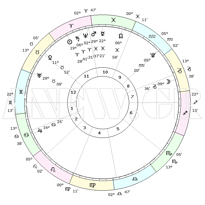 | | ΘΕΣΕΙΣ ΠΛΑΝΗΤΩΝ ΑΣΤΡΟΛΟΓΙΚΟΥ ΧΑΡΤΗ ΤΗΣ ΣΤΙΓΜΗΣ ΑΥΤΗΣ | | | | Πλανήτης | Ζώδιο | Μοίρες | Δεκαήμ. | Σε οίκο | Απόκλιση | | Ακμές των οίκων | | Ηλιος | Κριός | 19°24' | Δεύτερο | 12 | 07 N 35 | | 1ος | 24°36' | Ταύρος | | Σελήνη | Αιγόκερως | 08°46' | Πρώτο | 8 | 27 S 35 | | 2ος | 20°33' | Δίδυμοι | | Ερμής | Ιχθείς | 22°16' | Τρίτο | 11 | 05 S 10 | | 3ος | 12°12' | Καρκίνος | | Αφροδίτη | Ταύρος | 11°46' | Δεύτερο | 12 | 15 N 17 | | 4ος | 04°37' | Λέων | | Αρης | Ιχθείς | 29°33' | Τρίτο | 11 | 01 S 06 | | 5ος | 02°11' | Παρθένος | | Δίας | Καρκίνος | 16°25' | Δεύτερο | 3 | 22 N 48 | | 6ος | 09°43' | Ζυγός | | Κρόνος | Κριός | 06°41' | Πρώτο | 11 | 00 N 41 | | 7ος | 24°36' | Σκορπιός | | Ουρανός | Ταύρος | 29°08' | Τρίτο | 1 | 19 N 48 | | 8ος | 20°33' | Τοξότης | | Ποσειδώνας | Κριός | 02°31' | Πρώτο | 11 | 00 S 12 | | 9ος | 12°12' | Αιγόκερως | | Πλούτωνας | Υδροχόος | 05°20' | Πρώτο | 10 | 22 S 47 | | 10ος | 04°37' | Υδροχόος | | Β. Δεσμός | Ιχθείς | 06°58' | Πρώτο | 11 | 08 S 57 | | 11ος | 02°11' | Ιχθείς | | Ωροσκόπος | Ταύρος | 24°36' | Τρίτο | | | 12ος | 09°43' | Κριός | | Μεσουράνημα | Υδροχόος | 04°37' | Πρώτο | | | |