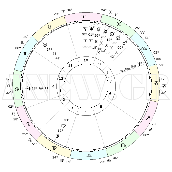 | | ΘΕΣΕΙΣ ΠΛΑΝΗΤΩΝ ΑΣΤΡΟΛΟΓΙΚΟΥ ΧΑΡΤΗ ΤΗΣ ΣΤΙΓΜΗΣ ΑΥΤΗΣ | | | | Πλανήτης | Ζώδιο | Μοίρες | Δεκαήμ. | Σε οίκο | Απόκλιση | | Ακμές των οίκων | | Ηλιος | Ιχθείς | 12°50' | Δεύτερο | 10 | 06 S 44 | | 1ος | 23°19' | Δίδυμοι | | Σελήνη | Παρθένος | 11°56' | Δεύτερο | 4 | 06 N 50 | | 2ος | 14°38' | Καρκίνος | | Ερμής | Ιχθείς | 20°33'R | Τρίτο | 10 | 00 S 27 | | 3ος | 06°05' | Λέων | | Αφροδίτη | Ιχθείς | 26°14' | Τρίτο | 10 | 02 S 42 | | 4ος | 01°23' | Παρθένος | | Αρης | Ιχθείς | 00°39' | Πρώτο | 9 | 12 S 16 | | 5ος | 04°10' | Ζυγός | | Δίας | Καρκίνος | 15°11'R | Δεύτερο | 2 | 22 N 55 | | 6ος | 14°28' | Σκορπιός | | Κρόνος | Κριός | 02°08' | Πρώτο | 10 | 01 S 07 | | 7ος | 23°19' | Τοξότης | | Ουρανός | Ταύρος | 27°47' | Τρίτο | 12 | 19 N 29 | | 8ος | 14°38' | Αιγόκερως | | Ποσειδώνας | Κριός | 01°08' | Πρώτο | 10 | 00 S 45 | | 9ος | 06°04' | Υδροχόος | | Πλούτωνας | Υδροχόος | 04°36' | Πρώτο | 8 | 22 S 52 | | 10ος | 01°23' | Ιχθείς | | Β. Δεσμός | Ιχθείς | 08°55' | Πρώτο | 10 | 08 S 13 | | 11ος | 04°10' | Κριός | | Ωροσκόπος | Δίδυμοι | 23°19' | Τρίτο | | | 12ος | 14°28' | Ταύρος | | Μεσουράνημα | Ιχθείς | 01°23' | Πρώτο | | | |