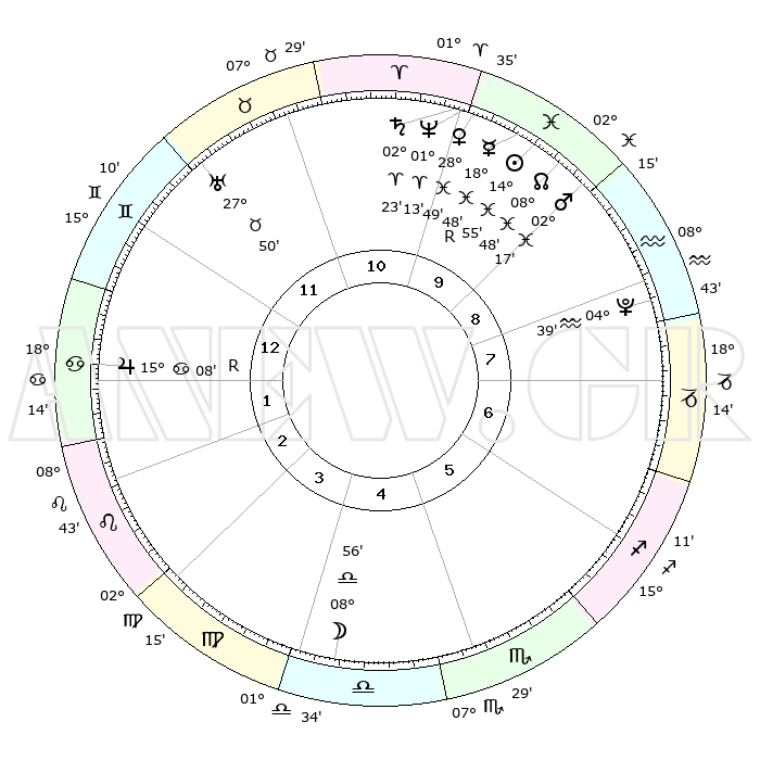 | | ΘΕΣΕΙΣ ΠΛΑΝΗΤΩΝ ΑΣΤΡΟΛΟΓΙΚΟΥ ΧΑΡΤΗ ΤΗΣ ΣΤΙΓΜΗΣ ΑΥΤΗΣ | | | | Πλανήτης | Ζώδιο | Μοίρες | Δεκαήμ. | Σε οίκο | Απόκλιση | | Ακμές των οίκων | | Ηλιος | Ιχθείς | 14°51' | Δεύτερο | 10 | 05 S 58 | | 1ος | 28°44' | Δίδυμοι | | Σελήνη | Ζυγός | 08°09' | Πρώτο | 4 | 05 S 36 | | 2ος | 19°36' | Καρκίνος | | Ερμής | Ιχθείς | 18°51'R | Δεύτερο | 10 | 01 S 01 | | 3ος | 11°19' | Λέων | | Αφροδίτη | Ιχθείς | 28°44' | Τρίτο | 10 | 01 S 41 | | 4ος | 07°26' | Παρθένος | | Αρης | Ιχθείς | 02°14' | Πρώτο | 9 | 11 S 42 | | 5ος | 11°10' | Ζυγός | | Δίας | Καρκίνος | 15°08'R | Δεύτερο | 1 | 22 N 55 | | 6ος | 21°15' | Σκορπιός | | Κρόνος | Κριός | 02°22' | Πρώτο | 10 | 01 S 01 | | 7ος | 28°44' | Τοξότης | | Ουρανός | Ταύρος | 27°50' | Τρίτο | 12 | 19 N 30 | | 8ος | 19°36' | Αιγόκερως | | Ποσειδώνας | Κριός | 01°13' | Πρώτο | 10 | 00 S 43 | | 9ος | 11°19' | Υδροχόος | | Πλούτωνας | Υδροχόος | 04°39' | Πρώτο | 8 | 22 S 51 | | 10ος | 07°26' | Ιχθείς | | Β. Δεσμός | Ιχθείς | 08°49' | Πρώτο | 10 | 08 S 16 | | 11ος | 11°10' | Κριός | | Ωροσκόπος | Δίδυμοι | 28°44' | Τρίτο | | | 12ος | 21°15' | Ταύρος | | Μεσουράνημα | Ιχθείς | 07°26' | Πρώτο | | | |
