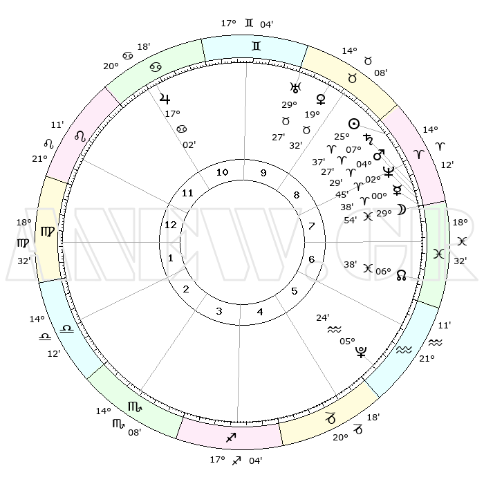 | | ΘΕΣΕΙΣ ΠΛΑΝΗΤΩΝ ΑΣΤΡΟΛΟΓΙΚΟΥ ΧΑΡΤΗ ΤΗΣ ΣΤΙΓΜΗΣ ΑΥΤΗΣ | | | | Πλανήτης | Ζώδιο | Μοίρες | Δεκαήμ. | Σε οίκο | Απόκλιση | | Ακμές των οίκων | | Ηλιος | Κριός | 25°32' | Τρίτο | 9 | 09 N 52 | | 1ος | 25°23' | Λέων | | Σελήνη | Ιχθείς | 28°47' | Τρίτο | 8 | 01 N 11 | | 2ος | 18°45' | Παρθένος | | Ερμής | Κριός | 00°31' | Πρώτο | 8 | 02 S 11 | | 3ος | 16°59' | Ζυγός | | Αφροδίτη | Ταύρος | 19°26' | Δεύτερο | 9 | 17 N 46 | | 4ος | 19°49' | Σκορπιός | | Αρης | Κριός | 04°26' | Πρώτο | 8 | 00 N 52 | | 5ος | 24°20' | Τοξότης | | Δίας | Καρκίνος | 17°01' | Δεύτερο | 11 | 22 N 44 | | 6ος | 26°41' | Αιγόκερως | | Κρόνος | Κριός | 07°27' | Πρώτο | 8 | 00 N 59 | | 7ος | 25°23' | Υδροχόος | | Ουρανός | Ταύρος | 29°27' | Τρίτο | 10 | 19 N 52 | | 8ος | 18°45' | Ιχθείς | | Ποσειδώνας | Κριός | 02°45' | Πρώτο | 8 | 00 S 07 | | 9ος | 16°59' | Κριός | | Πλούτωνας | Υδροχόος | 05°24' | Πρώτο | 6 | 22 S 47 | | 10ος | 19°49' | Ταύρος | | Β. Δεσμός | Ιχθείς | 06°38' | Πρώτο | 7 | 09 S 04 | | 11ος | 24°20' | Δίδυμοι | | Ωροσκόπος | Λέων | 25°23' | Τρίτο | | | 12ος | 26°41' | Καρκίνος | | Μεσουράνημα | Ταύρος | 19°49' | Δεύτερο | | | |