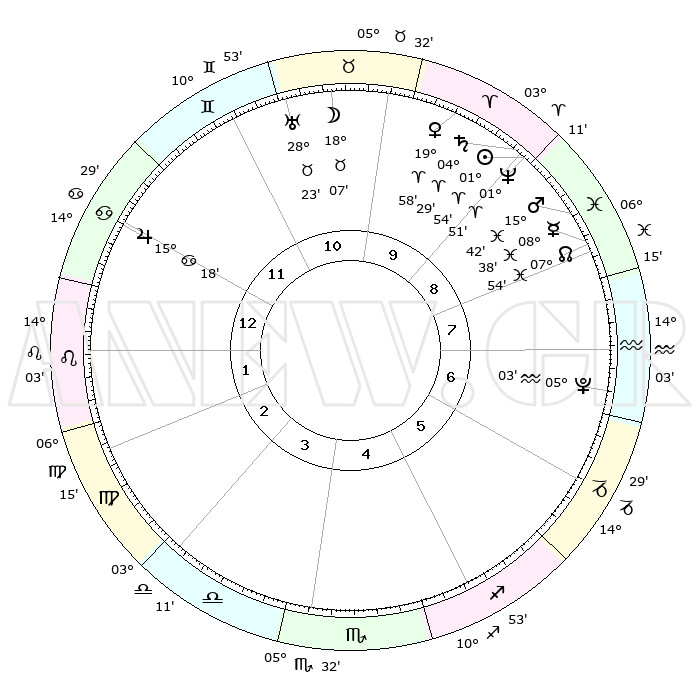 | | ΘΕΣΕΙΣ ΠΛΑΝΗΤΩΝ ΑΣΤΡΟΛΟΓΙΚΟΥ ΧΑΡΤΗ ΤΗΣ ΣΤΙΓΜΗΣ ΑΥΤΗΣ | | | | Πλανήτης | Ζώδιο | Μοίρες | Δεκαήμ. | Σε οίκο | Απόκλιση | | Ακμές των οίκων | | Ηλιος | Κριός | 01°50' | Πρώτο | 9 | 00 N 44 | | 1ος | 23°35' | Καρκίνος | | Σελήνη | Ταύρος | 17°06' | Δεύτερο | 11 | 21 N 36 | | 2ος | 14°16' | Λέων | | Ερμής | Ιχθείς | 08°38' | Πρώτο | 9 | 07 S 47 | | 3ος | 08°28' | Παρθένος | | Αφροδίτη | Κριός | 19°53' | Δεύτερο | 10 | 07 N 01 | | 4ος | 08°38' | Ζυγός | | Αρης | Ιχθείς | 15°39' | Δεύτερο | 9 | 06 S 39 | | 5ος | 14°42' | Σκορπιός | | Δίας | Καρκίνος | 15°18' | Δεύτερο | 12 | 22 N 55 | | 6ος | 21°29' | Τοξότης | | Κρόνος | Κριός | 04°28' | Πρώτο | 9 | 00 S 10 | | 7ος | 23°35' | Αιγόκερως | | Ουρανός | Ταύρος | 28°23' | Τρίτο | 11 | 19 N 37 | | 8ος | 14°16' | Υδροχόος | | Ποσειδώνας | Κριός | 01°51' | Πρώτο | 9 | 00 S 28 | | 9ος | 08°28' | Ιχθείς | | Πλούτωνας | Υδροχόος | 05°03' | Πρώτο | 7 | 22 S 48 | | 10ος | 08°38' | Κριός | | Β. Δεσμός | Ιχθείς | 07°55' | Πρώτο | 8 | 08 S 36 | | 11ος | 14°42' | Ταύρος | | Ωροσκόπος | Καρκίνος | 23°35' | Τρίτο | | | 12ος | 21°29' | Δίδυμοι | | Μεσουράνημα | Κριός | 08°38' | Πρώτο | | | |