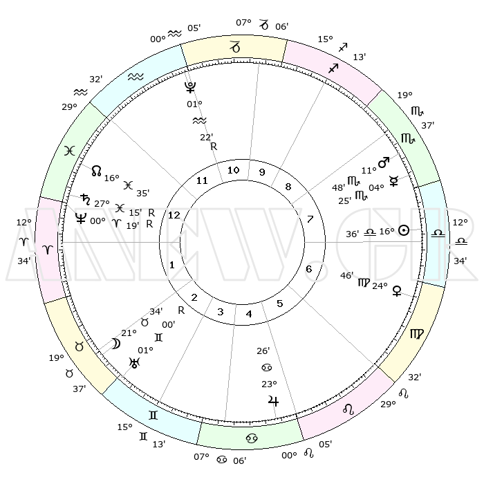| ΘΕΣΕΙΣ ΠΛΑΝΗΤΩΝ ΑΣΤΡΟΛΟΓΙΚΟΥ ΧΑΡΤΗ ΤΗΣ ΣΤΙΓΜΗΣ ΑΥΤΗΣ | | Πλανήτης | Ζώδιο | Μοίρες | Δεκαήμ. | Σε οίκο | Απόκλιση | | Ακμές των οίκων | Ηλιος | Ζυγός | 16°27' | Δεύτερο | 8 | 06 S 28 | | 1ος | 24°49' | Αιγόκερως | Σελήνη | Ταύρος | 19°21' | Δεύτερο | 4 | 21 N 57 | | 2ος | 07°58' | Ιχθείς | Ερμής | Σκορπιός | 04°12' | Πρώτο | 9 | 13 S 58 | | 3ος | 17°09' | Κριός | Αφροδίτη | Παρθένος | 24°35' | Τρίτο | 8 | 03 N 29 | | 4ος | 16°32' | Ταύρος | Αρης | Σκορπιός | 11°42' | Δεύτερο | 9 | 15 S 30 | | 5ος | 09°43' | Δίδυμοι | Δίας | Καρκίνος | 23°25' | Τρίτο | 6 | 21 N 26 | | 6ος | 00°60' | Καρκίνος | Κρόνος | Ιχθείς | 27°16'R | Τρίτο | 2 | 03 S 23 | | 7ος | 24°49' | Καρκίνος | Ουρανός | Δίδυμοι | 01°00'R | Πρώτο | 4 | 20 N 09 | | 8ος | 07°58' | Παρθένος | Ποσειδώνας | Κριός | 00°19'R | Πρώτο | 2 | 01 S 08 | | 9ος | 17°09' | Ζυγός | Πλούτωνας | Υδροχόος | 01°22'R | Πρώτο | 1 | 23 S 32 | | 10ος | 16°32' | Σκορπιός | Β. Δεσμός | Ιχθείς | 16°35' | Δεύτερο | 2 | 05 S 18 | | 11ος | 09°43' | Τοξότης | Ωροσκόπος | Αιγόκερως | 24°49' | Τρίτο | | | 12ος | 00°60' | Αιγόκερως | Μεσουράνημα | Σκορπιός | 16°32' | Δεύτερο | | | |
