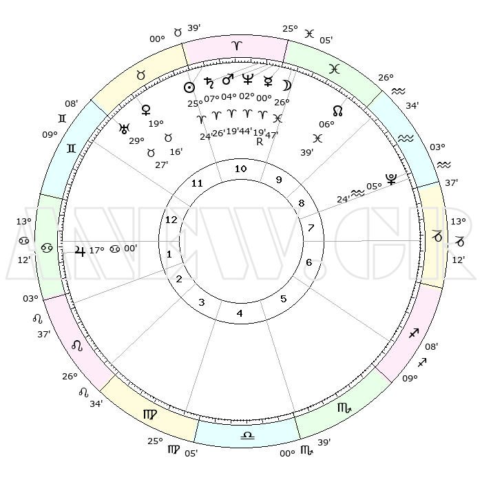 | | ΘΕΣΕΙΣ ΠΛΑΝΗΤΩΝ ΑΣΤΡΟΛΟΓΙΚΟΥ ΧΑΡΤΗ ΤΗΣ ΣΤΙΓΜΗΣ ΑΥΤΗΣ | | | | Πλανήτης | Ζώδιο | Μοίρες | Δεκαήμ. | Σε οίκο | Απόκλιση | | Ακμές των οίκων | | Ηλιος | Κριός | 25°20' | Τρίτο | 11 | 09 N 48 | | 1ος | 20°39' | Δίδυμοι | | Σελήνη | Ιχθείς | 25°49' | Τρίτο | 10 | 00 S 13 | | 2ος | 12°14' | Καρκίνος | | Ερμής | Κριός | 00°13'R | Πρώτο | 10 | 02 S 18 | | 3ος | 03°35' | Λέων | | Αφροδίτη | Ταύρος | 19°11' | Δεύτερο | 12 | 17 N 42 | | 4ος | 28°31' | Λέων | | Αρης | Κριός | 04°16' | Πρώτο | 11 | 00 N 48 | | 5ος | 00°49' | Ζυγός | | Δίας | Καρκίνος | 16°60' | Δεύτερο | 2 | 22 N 44 | | 6ος | 11°07' | Σκορπιός | | Κρόνος | Κριός | 07°25' | Πρώτο | 11 | 00 N 58 | | 7ος | 20°39' | Τοξότης | | Ουρανός | Ταύρος | 29°26' | Τρίτο | 12 | 19 N 52 | | 8ος | 12°14' | Αιγόκερως | | Ποσειδώνας | Κριός | 02°44' | Πρώτο | 11 | 00 S 07 | | 9ος | 03°35' | Υδροχόος | | Πλούτωνας | Υδροχόος | 05°24' | Πρώτο | 9 | 22 S 47 | | 10ος | 28°31' | Υδροχόος | | Β. Δεσμός | Ιχθείς | 06°39' | Πρώτο | 10 | 09 S 04 | | 11ος | 00°49' | Κριός | | Ωροσκόπος | Δίδυμοι | 20°39' | Τρίτο | | | 12ος | 11°07' | Ταύρος | | Μεσουράνημα | Υδροχόος | 28°31' | Τρίτο | | | |