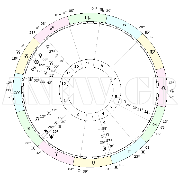 | | ΘΕΣΕΙΣ ΠΛΑΝΗΤΩΝ ΑΣΤΡΟΛΟΓΙΚΟΥ ΧΑΡΤΗ ΤΗΣ ΣΤΙΓΜΗΣ ΑΥΤΗΣ | | | | Πλανήτης | Ζώδιο | Μοίρες | Δεκαήμ. | Σε οίκο | Απόκλιση | | Ακμές των οίκων | | Ηλιος | Αιγόκερως | 09°48' | Πρώτο | 12 | 23 S 04 | | 1ος | 10°52' | Αιγόκερως | | Σελήνη | Ταύρος | 25°26' | Τρίτο | 4 | 23 N 51 | | 2ος | 20°48' | Υδροχόος | | Ερμής | Τοξότης | 27°31' | Τρίτο | 12 | 23 S 54 | | 3ος | 01°04' | Κριός | | Αφροδίτη | Αιγόκερως | 08°16' | Πρώτο | 12 | 23 S 39 | | 4ος | 03°05' | Ταύρος | | Αρης | Αιγόκερως | 12°07' | Δεύτερο | 1 | 23 S 46 | | 5ος | 27°49' | Ταύρος | | Δίας | Καρκίνος | 21°27'R | Τρίτο | 7 | 21 N 57 | | 6ος | 19°07' | Δίδυμοι | | Κρόνος | Ιχθείς | 26°15' | Τρίτο | 2 | 03 S 34 | | 7ος | 10°52' | Καρκίνος | | Ουρανός | Ταύρος | 27°58'R | Τρίτο | 5 | 19 N 30 | | 8ος | 20°48' | Λέων | | Ποσειδώνας | Ιχθείς | 29°30' | Τρίτο | 2 | 01 S 25 | | 9ος | 01°04' | Ζυγός | | Πλούτωνας | Υδροχόος | 02°42' | Πρώτο | 1 | 23 S 13 | | 10ος | 03°05' | Σκορπιός | | Β. Δεσμός | Ιχθείς | 12°13' | Δεύτερο | 2 | 06 S 59 | | 11ος | 27°49' | Σκορπιός | | Ωροσκόπος | Αιγόκερως | 10°52' | Δεύτερο | | | 12ος | 19°07' | Τοξότης | | Μεσουράνημα | Σκορπιός | 03°05' | Πρώτο | | | |