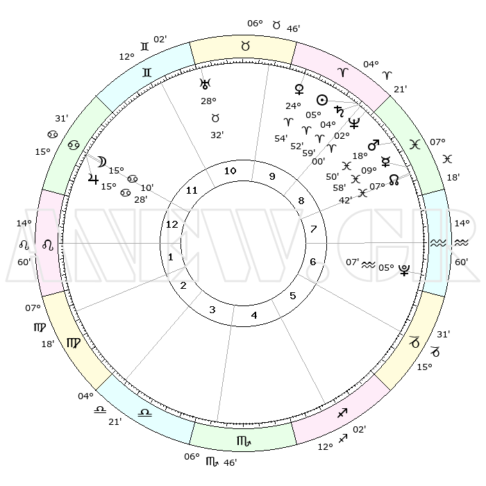 | | ΘΕΣΕΙΣ ΠΛΑΝΗΤΩΝ ΑΣΤΡΟΛΟΓΙΚΟΥ ΧΑΡΤΗ ΤΗΣ ΣΤΙΓΜΗΣ ΑΥΤΗΣ | | | | Πλανήτης | Ζώδιο | Μοίρες | Δεκαήμ. | Σε οίκο | Απόκλιση | | Ακμές των οίκων | | Ηλιος | Κριός | 05°49' | Πρώτο | 9 | 02 N 18 | | 1ος | 29°04' | Καρκίνος | | Σελήνη | Καρκίνος | 14°24' | Δεύτερο | 12 | 26 N 53 | | 2ος | 20°02' | Λέων | | Ερμής | Ιχθείς | 09°57' | Πρώτο | 8 | 08 S 07 | | 3ος | 14°58' | Παρθένος | | Αφροδίτη | Κριός | 24°50' | Τρίτο | 10 | 09 N 00 | | 4ος | 15°53' | Ζυγός | | Αρης | Ιχθείς | 18°47' | Δεύτερο | 9 | 05 S 25 | | 5ος | 21°56' | Σκορπιός | | Δίας | Καρκίνος | 15°28' | Δεύτερο | 12 | 22 N 54 | | 6ος | 27°48' | Τοξότης | | Κρόνος | Κριός | 04°58' | Πρώτο | 9 | 00 N 01 | | 7ος | 29°04' | Αιγόκερως | | Ουρανός | Ταύρος | 28°32' | Τρίτο | 11 | 19 N 40 | | 8ος | 20°02' | Υδροχόος | | Ποσειδώνας | Κριός | 02°00' | Πρώτο | 9 | 00 S 24 | | 9ος | 14°58' | Ιχθείς | | Πλούτωνας | Υδροχόος | 05°07' | Πρώτο | 7 | 22 S 48 | | 10ος | 15°53' | Κριός | | Β. Δεσμός | Ιχθείς | 07°42' | Πρώτο | 8 | 08 S 41 | | 11ος | 21°56' | Ταύρος | | Ωροσκόπος | Καρκίνος | 29°04' | Τρίτο | | | 12ος | 27°48' | Δίδυμοι | | Μεσουράνημα | Κριός | 15°53' | Δεύτερο | | | |