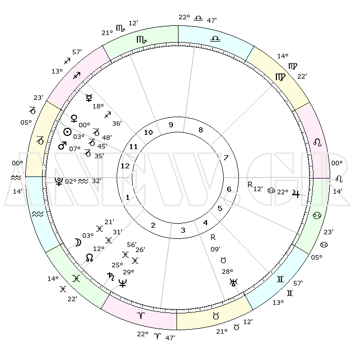 | | ΘΕΣΕΙΣ ΠΛΑΝΗΤΩΝ ΑΣΤΡΟΛΟΓΙΚΟΥ ΧΑΡΤΗ ΤΗΣ ΣΤΙΓΜΗΣ ΑΥΤΗΣ | | | | Πλανήτης | Ζώδιο | Μοίρες | Δεκαήμ. | Σε οίκο | Απόκλιση | | Ακμές των οίκων | | Ηλιος | Αιγόκερως | 03°41' | Πρώτο | 12 | 23 S 23 | | 1ος | 04°53' | Αιγόκερως | | Σελήνη | Ιχθείς | 02°30' | Πρώτο | 2 | 11 S 18 | | 2ος | 13°16' | Υδροχόος | | Ερμής | Τοξότης | 18°30' | Δεύτερο | 12 | 22 S 43 | | 3ος | 23°31' | Ιχθείς | | Αφροδίτη | Αιγόκερως | 00°43' | Πρώτο | 12 | 23 S 41 | | 4ος | 26°38' | Κριός | | Αρης | Αιγόκερως | 07°32' | Πρώτο | 1 | 24 S 04 | | 5ος | 22°12' | Ταύρος | | Δίας | Καρκίνος | 22°13'R | Τρίτο | 7 | 21 N 49 | | 6ος | 13°44' | Δίδυμοι | | Κρόνος | Ιχθείς | 25°56' | Τρίτο | 3 | 03 S 43 | | 7ος | 04°53' | Καρκίνος | | Ουρανός | Ταύρος | 28°09'R | Τρίτο | 5 | 19 N 33 | | 8ος | 13°16' | Λέων | | Ποσειδώνας | Ιχθείς | 29°26' | Τρίτο | 3 | 01 S 27 | | 9ος | 23°31' | Παρθένος | | Πλούτωνας | Υδροχόος | 02°31' | Πρώτο | 1 | 23 S 16 | | 10ος | 26°38' | Ζυγός | | Β. Δεσμός | Ιχθείς | 12°32' | Δεύτερο | 2 | 06 S 51 | | 11ος | 22°12' | Σκορπιός | | Ωροσκόπος | Αιγόκερως | 04°53' | Πρώτο | | | 12ος | 13°44' | Τοξότης | | Μεσουράνημα | Ζυγός | 26°38' | Τρίτο | | | |