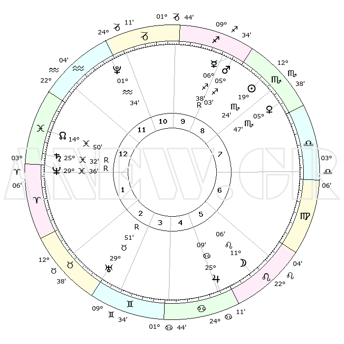 | | ΘΕΣΕΙΣ ΠΛΑΝΗΤΩΝ ΑΣΤΡΟΛΟΓΙΚΟΥ ΧΑΡΤΗ ΤΗΣ ΣΤΙΓΜΗΣ ΑΥΤΗΣ | | | | Πλανήτης | Ζώδιο | Μοίρες | Δεκαήμ. | Σε οίκο | Απόκλιση | | Ακμές των οίκων | | Ηλιος | Σκορπιός | 19°20' | Δεύτερο | 9 | 17 S 33 | | 1ος | 22°21' | Υδροχόος | | Σελήνη | Λέων | 10°08' | Δεύτερο | 6 | 20 N 35 | | 2ος | 08°09' | Κριός | | Ερμής | Τοξότης | 06°39'R | Πρώτο | 9 | 23 S 27 | | 3ος | 12°23' | Ταύρος | | Αφροδίτη | Σκορπιός | 05°41' | Πρώτο | 8 | 12 S 12 | | 4ος | 07°37' | Δίδυμοι | | Αρης | Τοξότης | 05°00' | Πρώτο | 9 | 21 S 37 | | 5ος | 29°23' | Δίδυμοι | | Δίας | Καρκίνος | 25°09' | Τρίτο | 6 | 21 N 12 | | 6ος | 22°13' | Καρκίνος | | Κρόνος | Ιχθείς | 25°32'R | Τρίτο | 1 | 04 S 01 | | 7ος | 22°21' | Λέων | | Ουρανός | Ταύρος | 29°51'R | Τρίτο | 3 | 19 N 55 | | 8ος | 08°09' | Ζυγός | | Ποσειδώνας | Ιχθείς | 29°36'R | Τρίτο | 1 | 01 S 25 | | 9ος | 12°23' | Σκορπιός | | Πλούτωνας | Υδροχόος | 01°34' | Πρώτο | 12 | 23 S 29 | | 10ος | 07°37' | Τοξότης | | Β. Δεσμός | Ιχθείς | 14°51' | Δεύτερο | 1 | 05 S 58 | | 11ος | 29°23' | Τοξότης | | Ωροσκόπος | Υδροχόος | 22°21' | Τρίτο | | | 12ος | 22°13' | Αιγόκερως | | Μεσουράνημα | Τοξότης | 07°37' | Πρώτο | | | |
