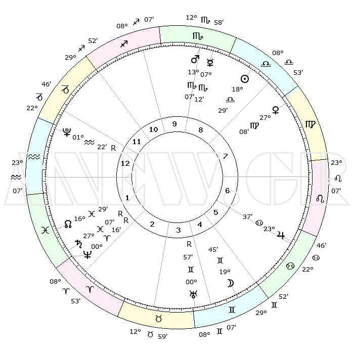 | ΘΕΣΕΙΣ ΠΛΑΝΗΤΩΝ ΑΣΤΡΟΛΟΓΙΚΟΥ ΧΑΡΤΗ ΤΗΣ ΣΤΙΓΜΗΣ ΑΥΤΗΣ | | Πλανήτης | Ζώδιο | Μοίρες | Δεκαήμ. | Σε οίκο | Απόκλιση | | Ακμές των οίκων | Ηλιος | Ζυγός | 18°19' | Δεύτερο | 10 | 07 S 11 | | 1ος | 13°33' | Τοξότης | Σελήνη | Δίδυμοι | 17°06' | Δεύτερο | 7 | 28 N 00 | | 2ος | 16°57' | Αιγόκερως | Ερμής | Σκορπιός | 06°56' | Πρώτο | 11 | 15 S 05 | | 3ος | 24°55' | Υδροχόος | Αφροδίτη | Παρθένος | 26°54' | Τρίτο | 9 | 02 N 35 | | 4ος | 00°44' | Κριός | Αρης | Σκορπιός | 12°60' | Δεύτερο | 11 | 15 S 55 | | 5ος | 29°47' | Κριός | Δίας | Καρκίνος | 23°36' | Τρίτο | 8 | 21 N 25 | | 6ος | 23°06' | Ταύρος | Κρόνος | Ιχθείς | 27°08'R | Τρίτο | 3 | 03 S 26 | | 7ος | 13°33' | Δίδυμοι | Ουρανός | Δίδυμοι | 00°57'R | Πρώτο | 6 | 20 N 08 | | 8ος | 16°57' | Καρκίνος | Ποσειδώνας | Κριός | 00°16'R | Πρώτο | 3 | 01 S 09 | | 9ος | 24°55' | Λέων | Πλούτωνας | Υδροχόος | 01°22'R | Πρώτο | 2 | 23 S 32 | | 10ος | 00°44' | Ζυγός | Β. Δεσμός | Ιχθείς | 16°29' | Δεύτερο | 3 | 05 S 20 | | 11ος | 29°47' | Ζυγός | Ωροσκόπος | Τοξότης | 13°33' | Δεύτερο | | | 12ος | 23°06' | Σκορπιός | Μεσουράνημα | Ζυγός | 00°44' | Πρώτο | | | |