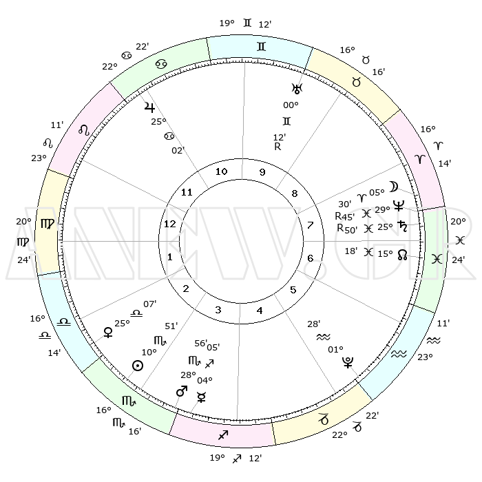 | | ΘΕΣΕΙΣ ΠΛΑΝΗΤΩΝ ΑΣΤΡΟΛΟΓΙΚΟΥ ΧΑΡΤΗ ΤΗΣ ΣΤΙΓΜΗΣ ΑΥΤΗΣ | | | | Πλανήτης | Ζώδιο | Μοίρες | Δεκαήμ. | Σε οίκο | Απόκλιση | | Ακμές των οίκων | | Ηλιος | Σκορπιός | 10°37' | Δεύτερο | 5 | 15 S 00 | | 1ος | 09°08' | Καρκίνος | | Σελήνη | Κριός | 01°59' | Πρώτο | 10 | 02 N 00 | | 2ος | 29°35' | Καρκίνος | | Ερμής | Τοξότης | 03°54' | Πρώτο | 5 | 23 S 46 | | 3ος | 22°07' | Λέων | | Αφροδίτη | Ζυγός | 24°49' | Τρίτο | 4 | 08 S 15 | | 4ος | 19°57' | Παρθένος | | Αρης | Σκορπιός | 28°45' | Τρίτο | 5 | 20 S 17 | | 5ος | 25°08' | Ζυγός | | Δίας | Καρκίνος | 25°01' | Τρίτο | 1 | 21 N 13 | | 6ος | 04°11' | Τοξότης | | Κρόνος | Ιχθείς | 25°51'R | Τρίτο | 10 | 03 S 55 | | 7ος | 09°08' | Αιγόκερως | | Ουρανός | Δίδυμοι | 00°12'R | Πρώτο | 11 | 19 N 59 | | 8ος | 29°35' | Αιγόκερως | | Ποσειδώνας | Ιχθείς | 29°45'R | Τρίτο | 10 | 01 S 21 | | 9ος | 22°07' | Υδροχόος | | Πλούτωνας | Υδροχόος | 01°28' | Πρώτο | 8 | 23 S 31 | | 10ος | 19°57' | Ιχθείς | | Β. Δεσμός | Ιχθείς | 15°18' | Δεύτερο | 9 | 05 S 47 | | 11ος | 25°08' | Κριός | | Ωροσκόπος | Καρκίνος | 09°08' | Πρώτο | | | 12ος | 04°11' | Δίδυμοι | | Μεσουράνημα | Ιχθείς | 19°57' | Δεύτερο | | | |