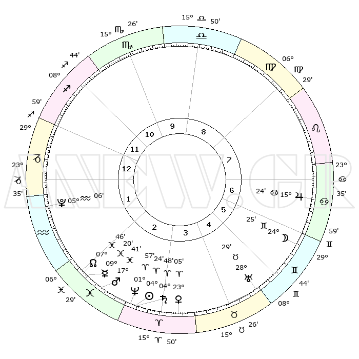 | | ΘΕΣΕΙΣ ΠΛΑΝΗΤΩΝ ΑΣΤΡΟΛΟΓΙΚΟΥ ΧΑΡΤΗ ΤΗΣ ΣΤΙΓΜΗΣ ΑΥΤΗΣ | | | | Πλανήτης | Ζώδιο | Μοίρες | Δεκαήμ. | Σε οίκο | Απόκλιση | | Ακμές των οίκων | | Ηλιος | Κριός | 04°20' | Πρώτο | 3 | 01 N 43 | | 1ος | 26°31' | Τοξότης | | Σελήνη | Δίδυμοι | 23°20' | Τρίτο | 6 | 28 N 19 | | 2ος | 02°48' | Υδροχόος | | Ερμής | Ιχθείς | 09°18' | Πρώτο | 2 | 08 S 04 | | 3ος | 12°31' | Ιχθείς | | Αφροδίτη | Κριός | 22°59' | Τρίτο | 4 | 08 N 16 | | 4ος | 16°59' | Κριός | | Αρης | Ιχθείς | 17°37' | Δεύτερο | 3 | 05 S 52 | | 5ος | 13°52' | Ταύρος | | Δίας | Καρκίνος | 15°24' | Δεύτερο | 7 | 22 N 54 | | 6ος | 05°55' | Δίδυμοι | | Κρόνος | Κριός | 04°47' | Πρώτο | 3 | 00 S 03 | | 7ος | 26°31' | Δίδυμοι | | Ουρανός | Ταύρος | 28°28' | Τρίτο | 5 | 19 N 39 | | 8ος | 02°48' | Λέων | | Ποσειδώνας | Κριός | 01°57' | Πρώτο | 3 | 00 S 26 | | 9ος | 12°31' | Παρθένος | | Πλούτωνας | Υδροχόος | 05°06' | Πρώτο | 2 | 22 S 48 | | 10ος | 16°59' | Ζυγός | | Β. Δεσμός | Ιχθείς | 07°47' | Πρώτο | 2 | 08 S 39 | | 11ος | 13°52' | Σκορπιός | | Ωροσκόπος | Τοξότης | 26°31' | Τρίτο | | | 12ος | 05°55' | Τοξότης | | Μεσουράνημα | Ζυγός | 16°59' | Δεύτερο | | | |