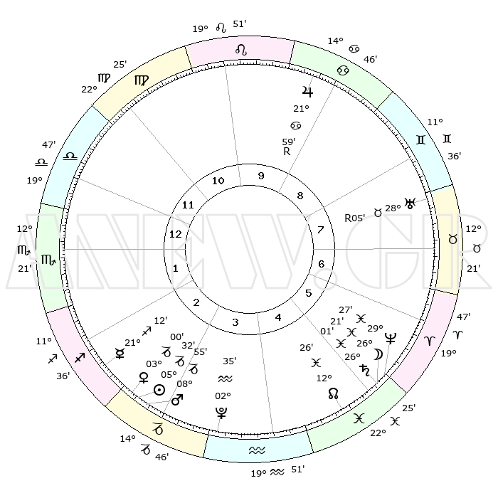 | | ΘΕΣΕΙΣ ΠΛΑΝΗΤΩΝ ΑΣΤΡΟΛΟΓΙΚΟΥ ΧΑΡΤΗ ΤΗΣ ΣΤΙΓΜΗΣ ΑΥΤΗΣ | | | | Πλανήτης | Ζώδιο | Μοίρες | Δεκαήμ. | Σε οίκο | Απόκλιση | | Ακμές των οίκων | | Ηλιος | Αιγόκερως | 05°27' | Πρώτο | 3 | 23 S 19 | | 1ος | 19°06' | Ζυγός | | Σελήνη | Ιχθείς | 25°17' | Τρίτο | 6 | 00 S 45 | | 2ος | 16°53' | Σκορπιός | | Ερμής | Τοξότης | 21°05' | Τρίτο | 3 | 23 S 07 | | 3ος | 18°08' | Τοξότης | | Αφροδίτη | Αιγόκερως | 02°54' | Πρώτο | 3 | 23 S 43 | | 4ος | 21°41' | Αιγόκερως | | Αρης | Αιγόκερως | 08°52' | Πρώτο | 3 | 24 S 00 | | 5ος | 24°38' | Υδροχόος | | Δίας | Καρκίνος | 21°60'R | Τρίτο | 10 | 21 N 52 | | 6ος | 24°08' | Ιχθείς | | Κρόνος | Ιχθείς | 26°01' | Τρίτο | 6 | 03 S 40 | | 7ος | 19°06' | Κριός | | Ουρανός | Ταύρος | 28°05'R | Τρίτο | 8 | 19 N 32 | | 8ος | 16°53' | Ταύρος | | Ποσειδώνας | Ιχθείς | 29°27' | Τρίτο | 6 | 01 S 27 | | 9ος | 18°08' | Δίδυμοι | | Πλούτωνας | Υδροχόος | 02°34' | Πρώτο | 4 | 23 S 15 | | 10ος | 21°41' | Καρκίνος | | Β. Δεσμός | Ιχθείς | 12°26' | Δεύτερο | 5 | 06 S 54 | | 11ος | 24°38' | Λέων | | Ωροσκόπος | Ζυγός | 19°06' | Δεύτερο | | | 12ος | 24°08' | Παρθένος | | Μεσουράνημα | Καρκίνος | 21°41' | Τρίτο | | | |