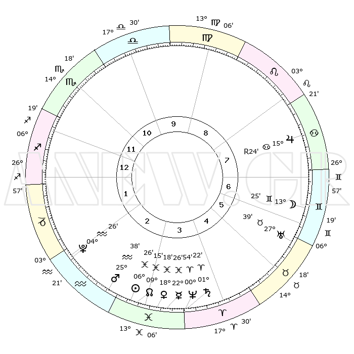 | | ΘΕΣΕΙΣ ΠΛΑΝΗΤΩΝ ΑΣΤΡΟΛΟΓΙΚΟΥ ΧΑΡΤΗ ΤΗΣ ΣΤΙΓΜΗΣ ΑΥΤΗΣ | | | | Πλανήτης | Ζώδιο | Μοίρες | Δεκαήμ. | Σε οίκο | Απόκλιση | | Ακμές των οίκων | | Ηλιος | Ιχθείς | 06°23' | Πρώτο | 3 | 09 S 10 | | 1ος | 10°08' | Τοξότης | | Σελήνη | Δίδυμοι | 12°39' | Δεύτερο | 7 | 27 N 32 | | 2ος | 12°52' | Αιγόκερως | | Ερμής | Ιχθείς | 22°26' | Τρίτο | 3 | 00 S 42 | | 3ος | 20°17' | Υδροχόος | | Αφροδίτη | Ιχθείς | 18°14' | Δεύτερο | 3 | 05 S 57 | | 4ος | 26°16' | Ιχθείς | | Αρης | Υδροχόος | 25°36' | Τρίτο | 3 | 14 S 01 | | 5ος | 25°52' | Κριός | | Δίας | Καρκίνος | 15°25'R | Δεύτερο | 8 | 22 N 53 | | 6ος | 19°35' | Ταύρος | | Κρόνος | Κριός | 01°22' | Πρώτο | 4 | 01 S 25 | | 7ος | 10°08' | Δίδυμοι | | Ουρανός | Ταύρος | 27°39' | Τρίτο | 6 | 19 N 27 | | 8ος | 12°52' | Καρκίνος | | Ποσειδώνας | Κριός | 00°54' | Πρώτο | 4 | 00 S 50 | | 9ος | 20°17' | Λέων | | Πλούτωνας | Υδροχόος | 04°26' | Πρώτο | 2 | 22 S 54 | | 10ος | 26°16' | Παρθένος | | Β. Δεσμός | Ιχθείς | 09°15' | Πρώτο | 3 | 08 S 06 | | 11ος | 25°52' | Ζυγός | | Ωροσκόπος | Τοξότης | 10°08' | Δεύτερο | | | 12ος | 19°35' | Σκορπιός | | Μεσουράνημα | Παρθένος | 26°16' | Τρίτο | | | |