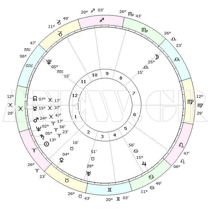 | | ΘΕΣΕΙΣ ΠΛΑΝΗΤΩΝ ΑΣΤΡΟΛΟΓΙΚΟΥ ΧΑΡΤΗ ΤΗΣ ΣΤΙΓΜΗΣ ΑΥΤΗΣ | | | | Πλανήτης | Ζώδιο | Μοίρες | Δεκαήμ. | Σε οίκο | Απόκλιση | | Ακμές των οίκων | | Ηλιος | Κριός | 13°18' | Δεύτερο | 2 | 05 N 15 | | 1ος | 04°51' | Υδροχόος | | Σελήνη | Ζυγός | 24°20' | Τρίτο | 8 | 12 S 53 | | 2ος | 19°39' | Ιχθείς | | Ερμής | Ιχθείς | 15°33' | Δεύτερο | 1 | 07 S 11 | | 3ος | 27°18' | Κριός | | Αφροδίτη | Ταύρος | 04°10' | Πρώτο | 3 | 12 N 34 | | 4ος | 24°57' | Ταύρος | | Αρης | Ιχθείς | 24°44' | Τρίτο | 2 | 03 S 03 | | 5ος | 17°23' | Δίδυμοι | | Δίας | Καρκίνος | 15°55' | Δεύτερο | 6 | 22 N 51 | | 6ος | 09°01' | Καρκίνος | | Κρόνος | Κριός | 05°55' | Πρώτο | 2 | 00 N 24 | | 7ος | 04°51' | Λέων | | Ουρανός | Ταύρος | 28°51' | Τρίτο | 4 | 19 N 44 | | 8ος | 19°39' | Παρθένος | | Ποσειδώνας | Κριός | 02°17' | Πρώτο | 2 | 00 S 18 | | 9ος | 27°18' | Ζυγός | | Πλούτωνας | Υδροχόος | 05°15' | Πρώτο | 1 | 22 S 47 | | 10ος | 24°57' | Σκορπιός | | Β. Δεσμός | Ιχθείς | 07°18' | Πρώτο | 1 | 08 S 50 | | 11ος | 17°23' | Τοξότης | | Ωροσκόπος | Υδροχόος | 04°51' | Πρώτο | | | 12ος | 09°01' | Αιγόκερως | | Μεσουράνημα | Σκορπιός | 24°57' | Τρίτο | | | |