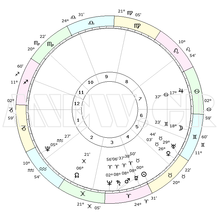 | | ΘΕΣΕΙΣ ΠΛΑΝΗΤΩΝ ΑΣΤΡΟΛΟΓΙΚΟΥ ΧΑΡΤΗ ΤΗΣ ΣΤΙΓΜΗΣ ΑΥΤΗΣ | | | | Πλανήτης | Ζώδιο | Μοίρες | Δεκαήμ. | Σε οίκο | Απόκλιση | | Ακμές των οίκων | | Ηλιος | Ταύρος | 00°46' | Πρώτο | 5 | 11 N 44 | | 1ος | 11°01' | Τοξότης | | Σελήνη | Δίδυμοι | 17°21' | Δεύτερο | 7 | 27 N 50 | | 2ος | 13°55' | Αιγόκερως | | Ερμής | Κριός | 08°32' | Πρώτο | 4 | 00 N 59 | | 3ος | 21°29' | Υδροχόος | | Αφροδίτη | Ταύρος | 25°58' | Τρίτο | 6 | 19 N 40 | | 4ος | 27°26' | Ιχθείς | | Αρης | Κριός | 08°34' | Πρώτο | 4 | 02 N 31 | | 5ος | 26°53' | Κριός | | Δίας | Καρκίνος | 17°37' | Δεύτερο | 8 | 22 N 39 | | 6ος | 20°30' | Ταύρος | | Κρόνος | Κριός | 08°05' | Πρώτο | 4 | 01 N 14 | | 7ος | 11°01' | Δίδυμοι | | Ουρανός | Ταύρος | 29°44' | Τρίτο | 6 | 19 N 55 | | 8ος | 13°55' | Καρκίνος | | Ποσειδώνας | Κριός | 02°56' | Πρώτο | 4 | 00 S 03 | | 9ος | 21°29' | Λέων | | Πλούτωνας | Υδροχόος | 05°27' | Πρώτο | 2 | 22 S 48 | | 10ος | 27°26' | Παρθένος | | Β. Δεσμός | Ιχθείς | 06°21' | Πρώτο | 3 | 09 S 11 | | 11ος | 26°53' | Ζυγός | | Ωροσκόπος | Τοξότης | 11°01' | Δεύτερο | | | 12ος | 20°30' | Σκορπιός | | Μεσουράνημα | Παρθένος | 27°26' | Τρίτο | | | |
