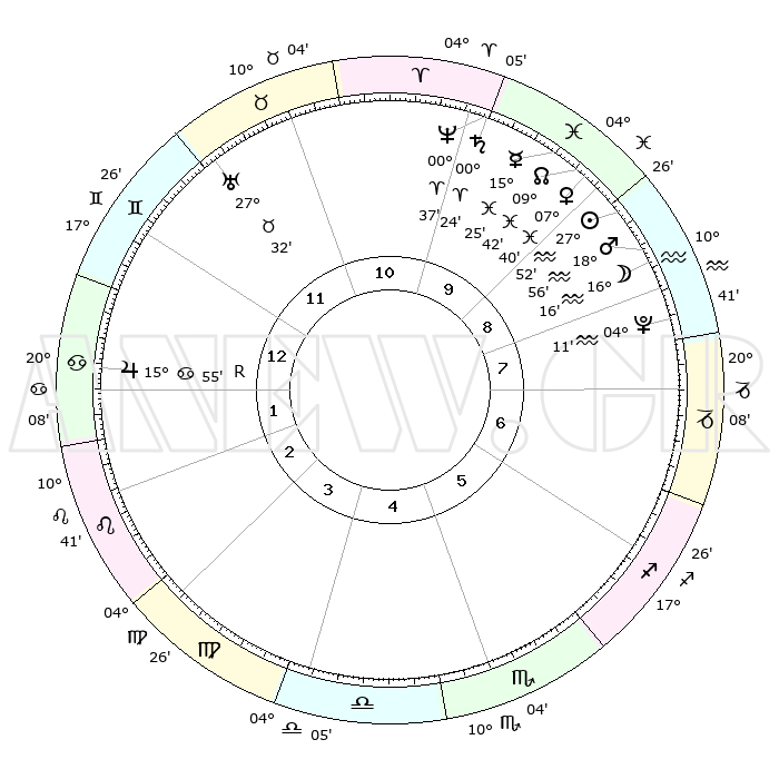 | | ΘΕΣΕΙΣ ΠΛΑΝΗΤΩΝ ΑΣΤΡΟΛΟΓΙΚΟΥ ΧΑΡΤΗ ΤΗΣ ΣΤΙΓΜΗΣ ΑΥΤΗΣ | | | | Πλανήτης | Ζώδιο | Μοίρες | Δεκαήμ. | Σε οίκο | Απόκλιση | | Ακμές των οίκων | | Ηλιος | Υδροχόος | 27°47' | Τρίτο | 9 | 12 S 14 | | 1ος | 26°26' | Δίδυμοι | | Σελήνη | Υδροχόος | 15°18' | Δεύτερο | 9 | 18 S 16 | | 2ος | 17°28' | Καρκίνος | | Ερμής | Ιχθείς | 15°19' | Δεύτερο | 10 | 05 S 26 | | 3ος | 09°04' | Λέων | | Αφροδίτη | Ιχθείς | 07°34' | Πρώτο | 10 | 10 S 05 | | 4ος | 04°49' | Παρθένος | | Αρης | Υδροχόος | 18°53' | Δεύτερο | 9 | 16 S 11 | | 5ος | 08°10' | Ζυγός | | Δίας | Καρκίνος | 15°55'R | Δεύτερο | 1 | 22 N 49 | | 6ος | 18°22' | Σκορπιός | | Κρόνος | Κριός | 00°23' | Πρώτο | 10 | 01 S 49 | | 7ος | 26°26' | Τοξότης | | Ουρανός | Ταύρος | 27°32' | Τρίτο | 12 | 19 N 25 | | 8ος | 17°28' | Αιγόκερως | | Ποσειδώνας | Κριός | 00°37' | Πρώτο | 10 | 00 S 57 | | 9ος | 09°04' | Υδροχόος | | Πλούτωνας | Υδροχόος | 04°11' | Πρώτο | 8 | 22 S 56 | | 10ος | 04°49' | Ιχθείς | | Β. Δεσμός | Ιχθείς | 09°43' | Πρώτο | 10 | 07 S 56 | | 11ος | 08°10' | Κριός | | Ωροσκόπος | Δίδυμοι | 26°26' | Τρίτο | | | 12ος | 18°22' | Ταύρος | | Μεσουράνημα | Ιχθείς | 04°49' | Πρώτο | | | |